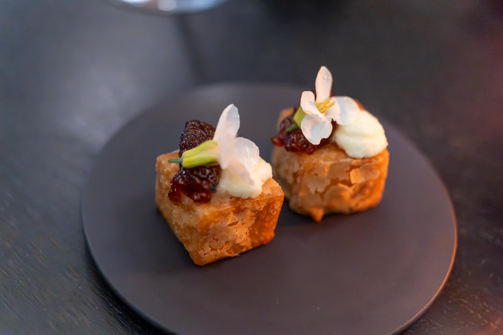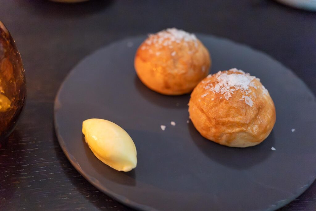 Before the first course, we were given some milkbread and butter and an amuse bouche of cubes of fried ??? topped with ???. Milkbread was just ok since we’ve definitely had better (the milkbread with the XO Escargot at Four Kings comes to mind).