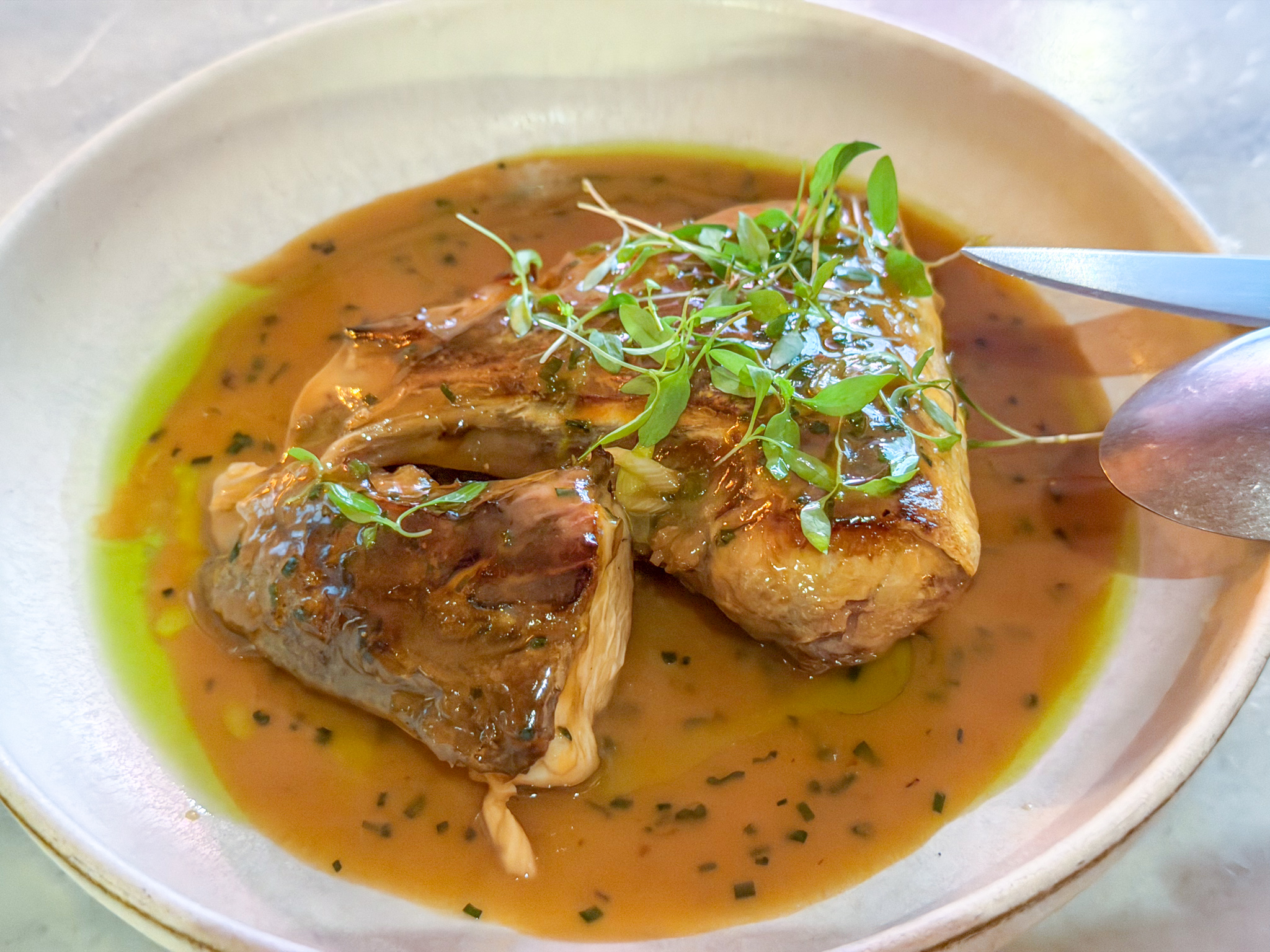 They had some amberjack specials…a ceviche and collar so we ordered both. The ceviche was very fresh (as one would hope) and the marinade was colorful and very flavorful. The collar was one of the best parts of the fish and was very tender.