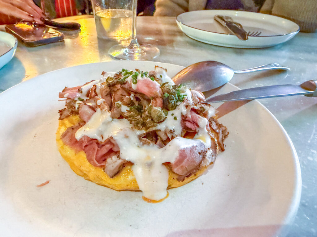 Lastly, we ordered the Betanzos style omelette. It was loaded with Iberian pork, capers, and and pil pil sauce. True to it’s style it was slightly runny and also very tasty and a much more interesting and tasty omelette than last night.