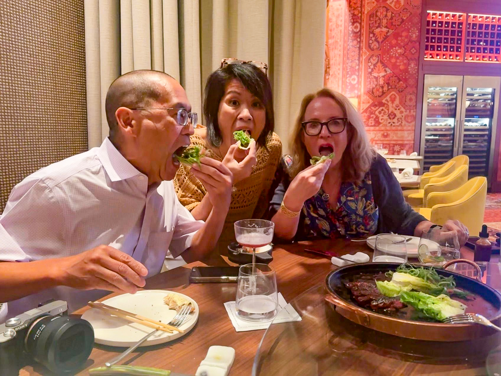 This was our first meal together which I booked early evening the day we all arrived here in Vegas. The restaurant is located in a bougie shopping mall (we did see Lisa Vanderpump and her husband walking their perfectly groomed Pomeranian around the mall) adjacent to the Aria Hotel. We had an early seating right when they opened and they seated us in a table tucked away into it’s own little alcove with a large lazy susan in the middle of the round table. We probably could have seated another 4 people or more. Maybe our reputation of being loud when we eat altogether as a family preceded us, haha (and yes, I’m sure we were).