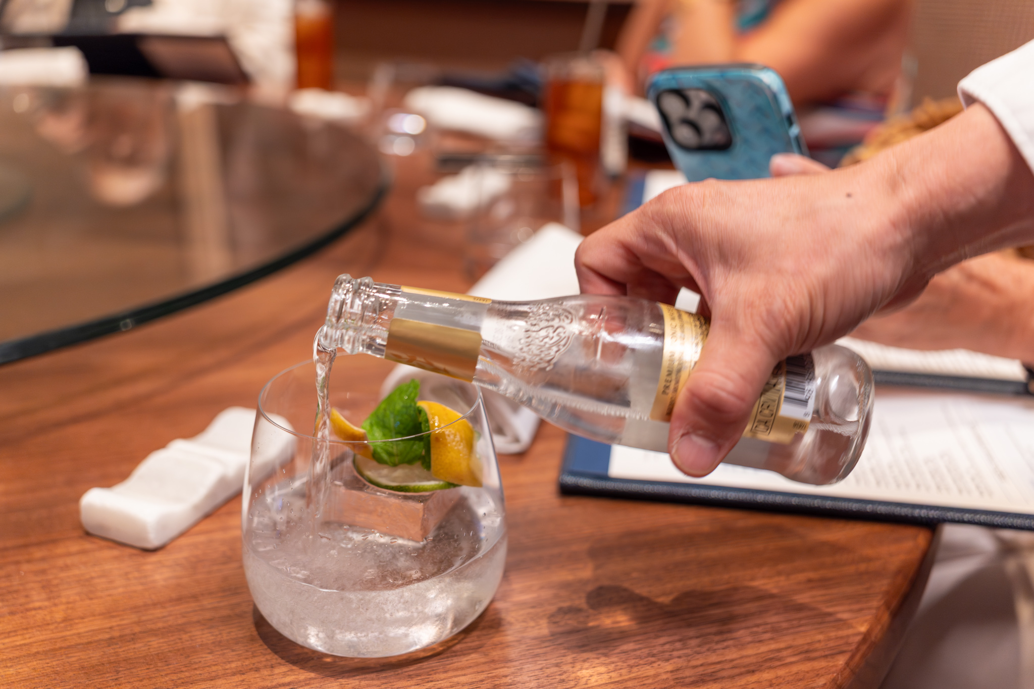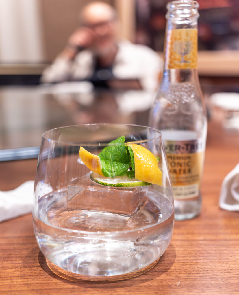 Andrea and I started with their Ultimate G&T which had a nice presentation with the lemon, lime, lemon verbena, and juniper berries set atop a clear cube of ice. Delicious.