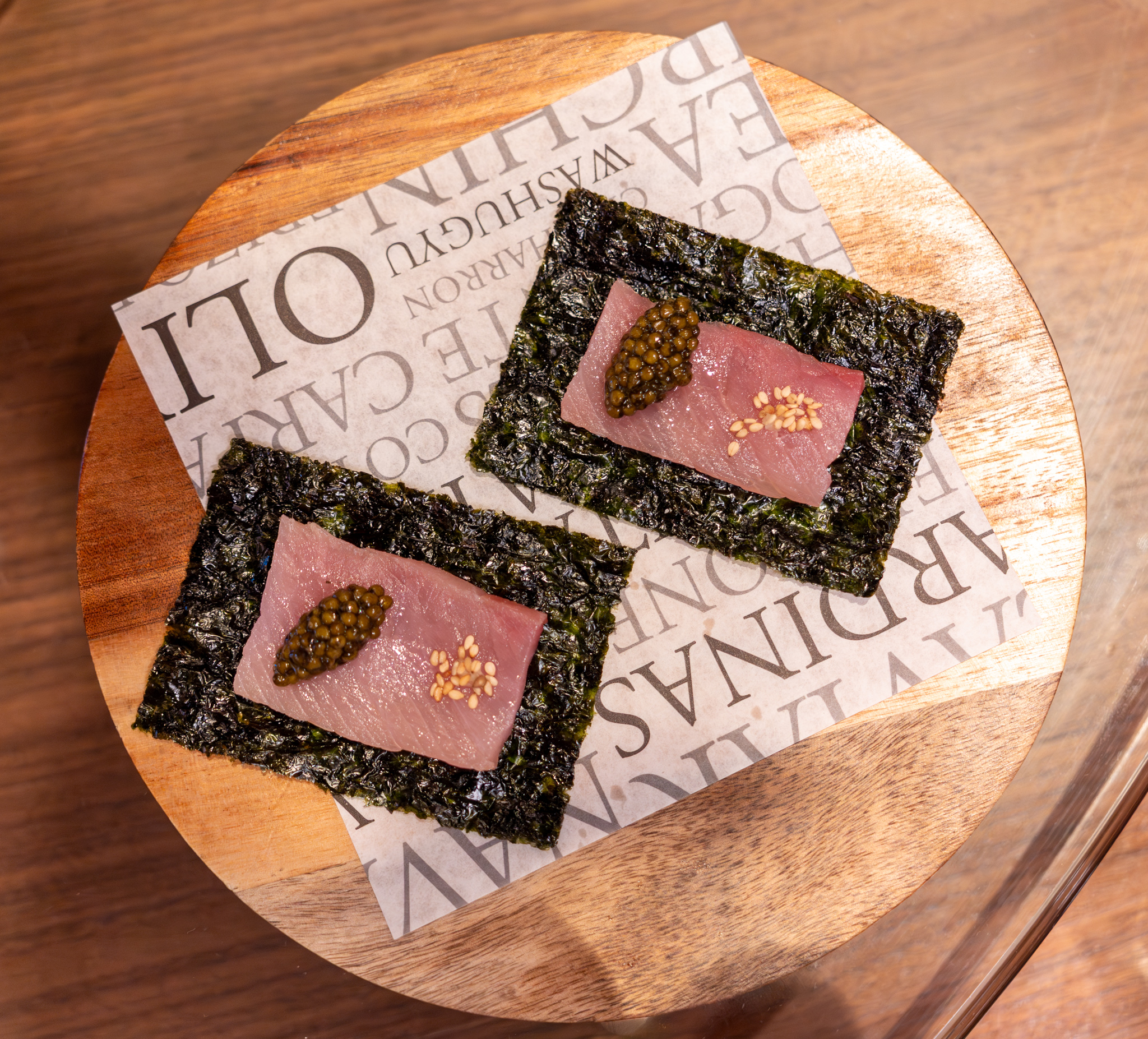 Next came the José’s Taco which was available two different ways, either the original with the Jamón Ibérico (which I had when we ate at Bazaar Meat) we had made with their house cured hamachi which was specific to this restaurant only. We opted for the latter. It was delicious, but I preferred the original (jamón FTW).