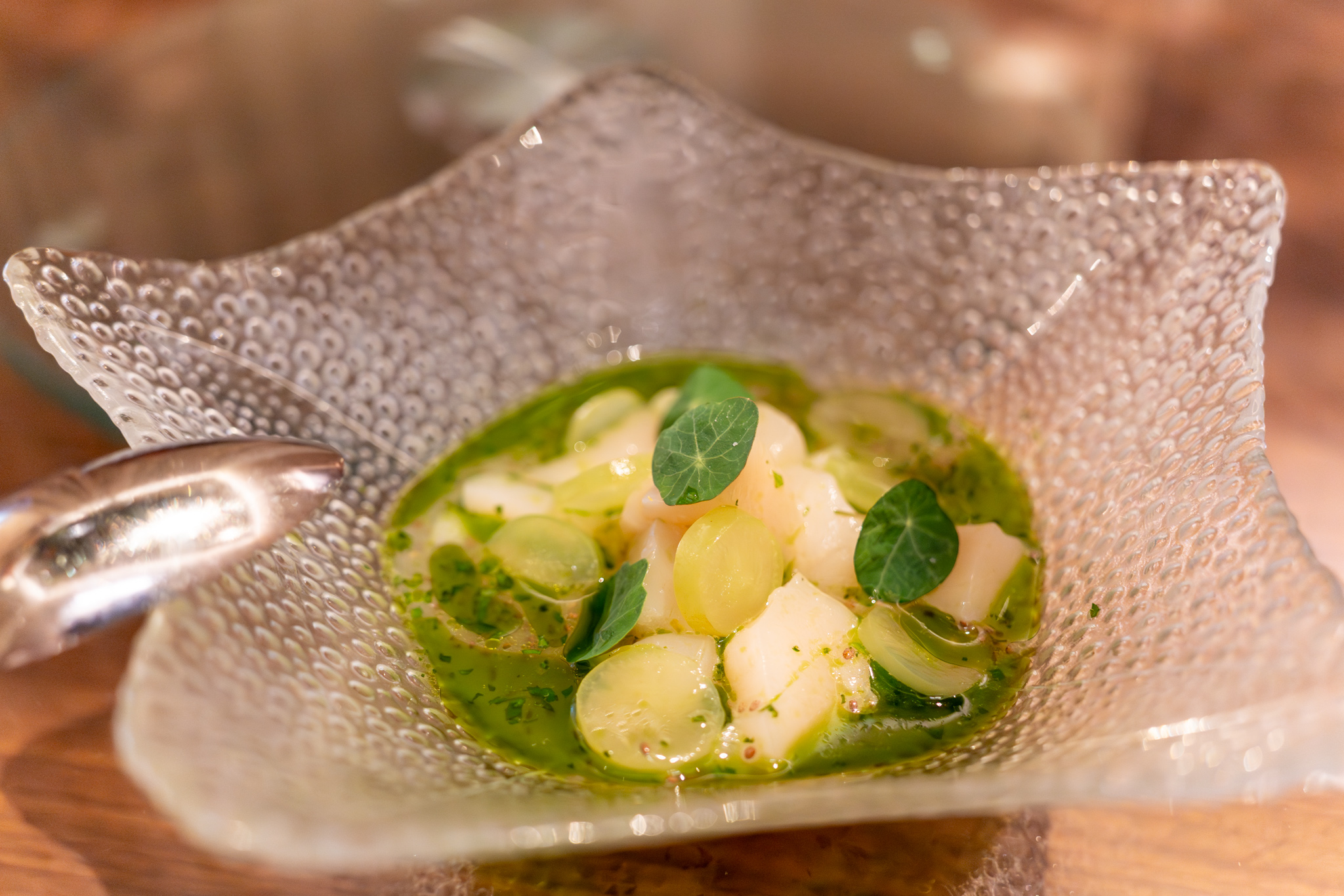 Next up were the dishes from the Raw and Simple section of the menu. First dish was here was the Hokkaido Sea Scallops Crudo. This was one of our favorite dishes. The scallops were so creamy and tender. The aguachile. liquid was made of tomatillo and seeds. There were a few thin slices of grapes to give a little sweetness, and some jalapeño-cucumber oil to give it a little kick.