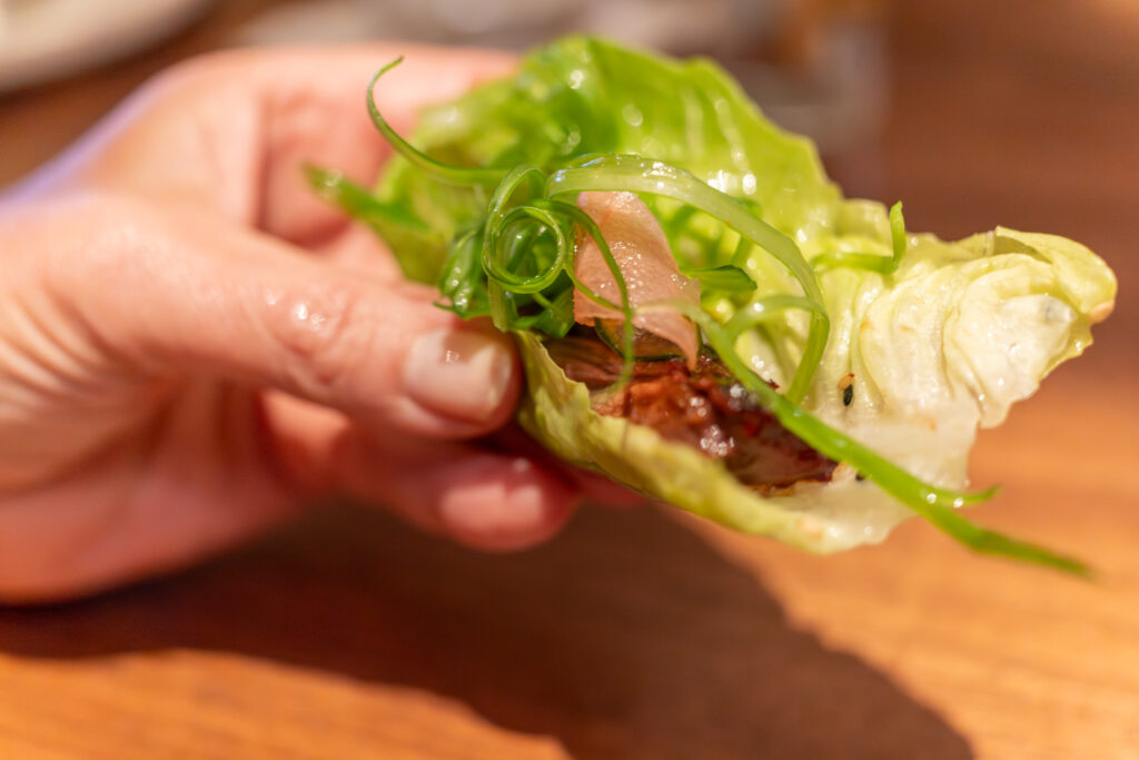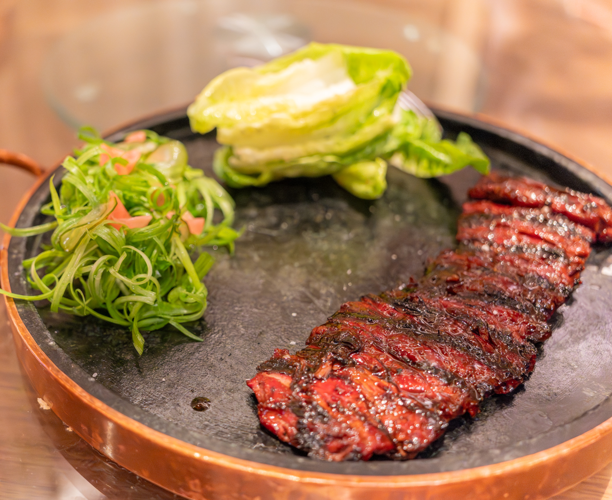 Then came the Ribeye, Akaushi Wagyu. The meat was marinated and grilled served with some baby lettuce to make some lettuce wraps with the meat. Since that was the first meat we had this meal, it was quite tasty.