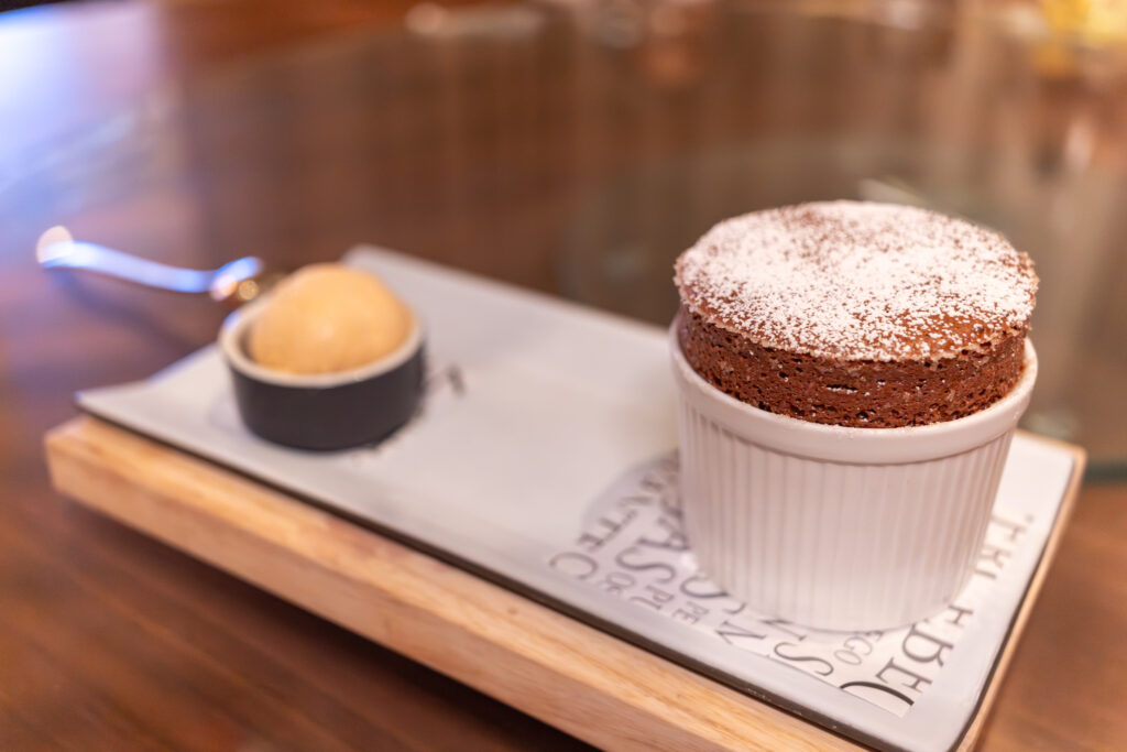 We are all full, but we had to get a dessert. They had a Chocolate Soufflé made with 70% dark chocolate and carmelized banana ice cream. Again, I love eggy dishes and I also love bananas so this was a no brainer. There was a 12-15 minute wait for it, but since we were all pretty full, it gave us a little time to digest. Overall, it was solid, but not one of the best soufflés I’ve had. It could have used a sauce of some kind, even creme anglaise.