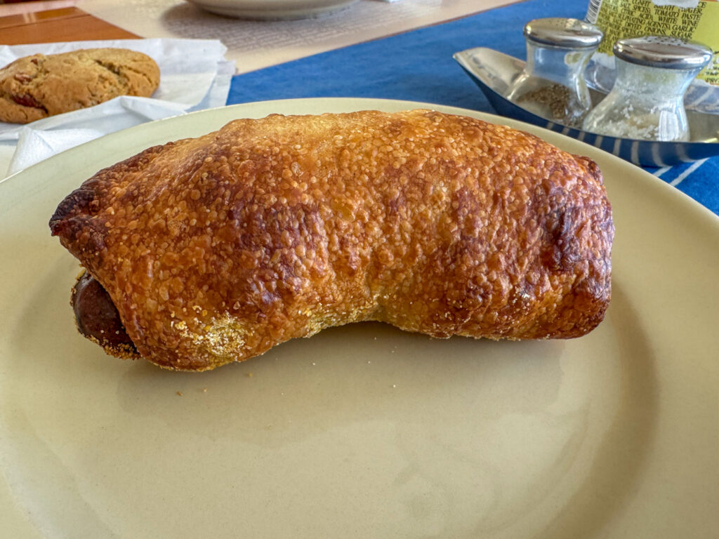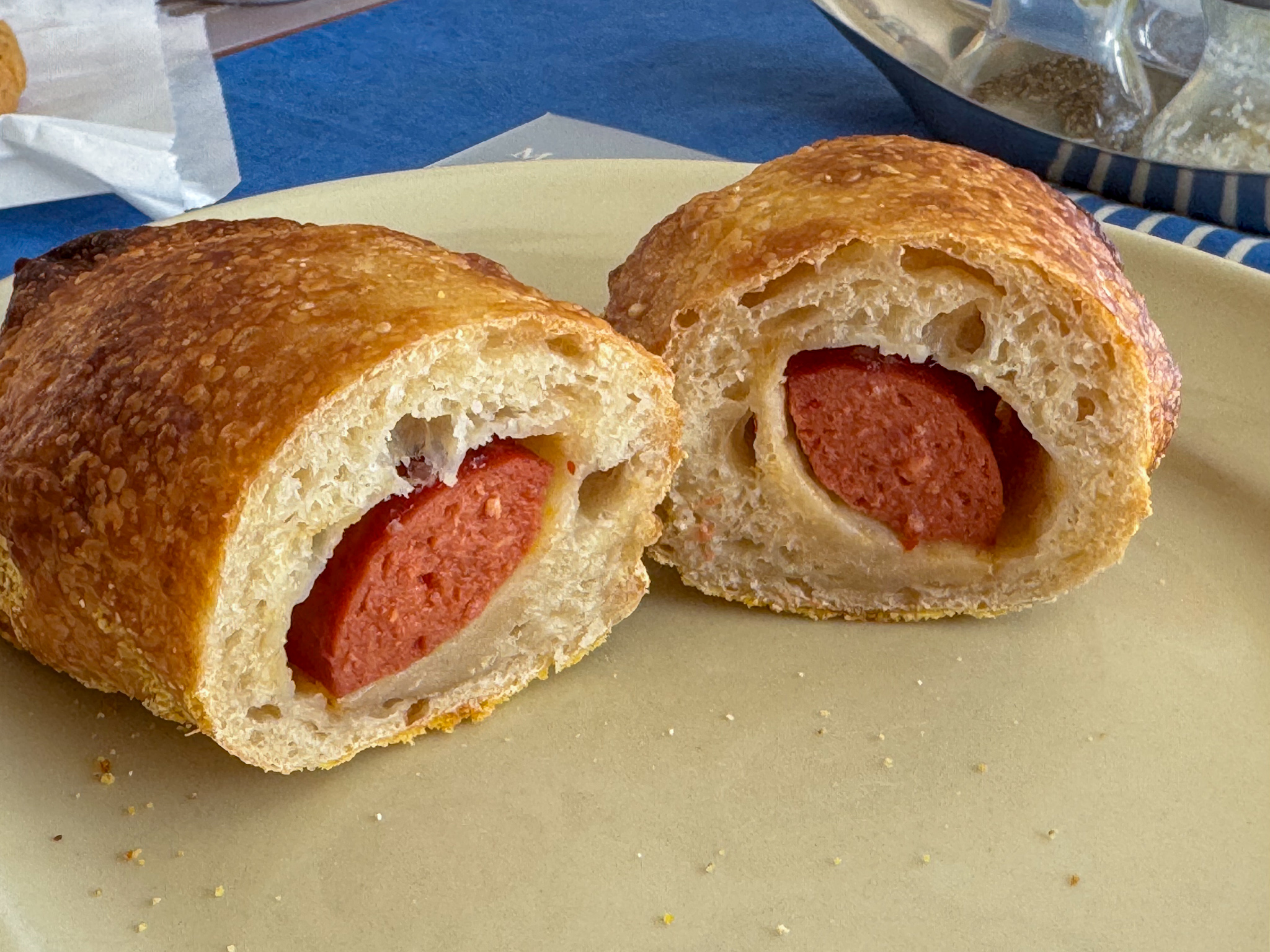 Finally went back back here to get the bagel dog which I’ve wanted to do ever since we first visited. Andrea got the Veggie bagel sandwich with an every bagel and I also picked up a Brown Butter Pecan Cookie. The bagel dog was of course pre-cooked and was just sitting on a rack when I ordered it. With the bagel dog, the dog almost mostly covers the dog so it is basically an oversized pig-in-blanket. The dog had a tiny bit of heat to it and i did really like the bagel itself, but overall this was disappointing and I would not get it again.