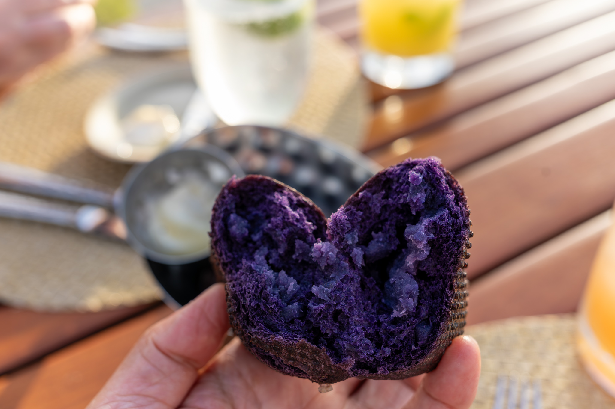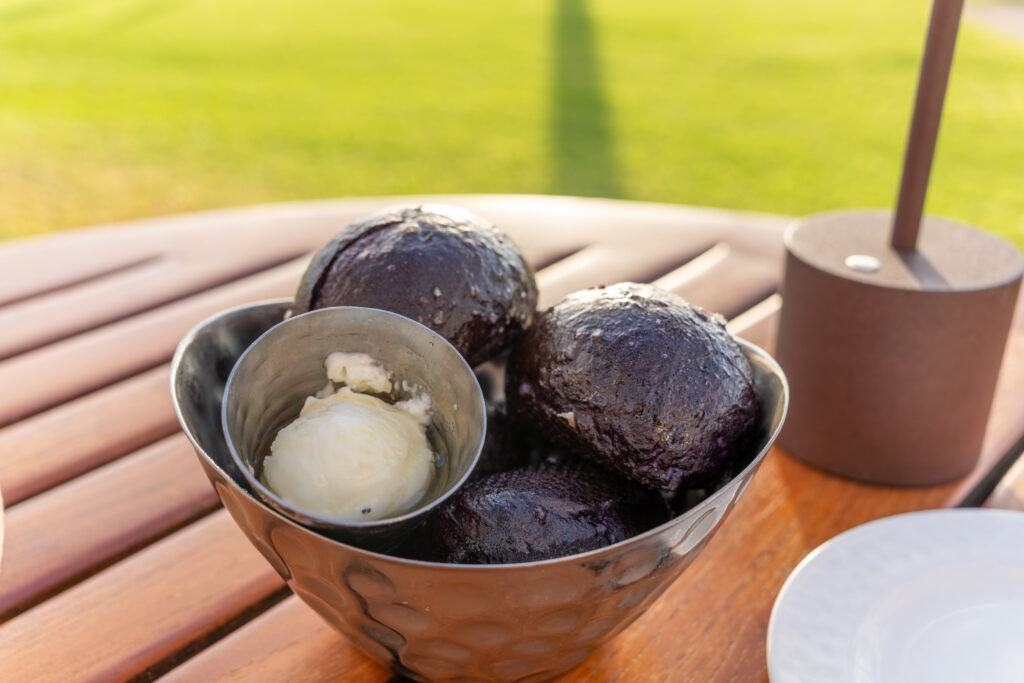 We were given the bread to start which is their Signature Ube Rolls with Orchid Honey Butter. These were incredible. The color on them was quite striking with a vivid deep purple color. The texture of the bread was softer and more moist, almost the texture of a muffin, but not quite that soft. Plus the bread was a bit sweeter no doubt due to the ube and honey butter also added to that. Regardless, they were delicious.