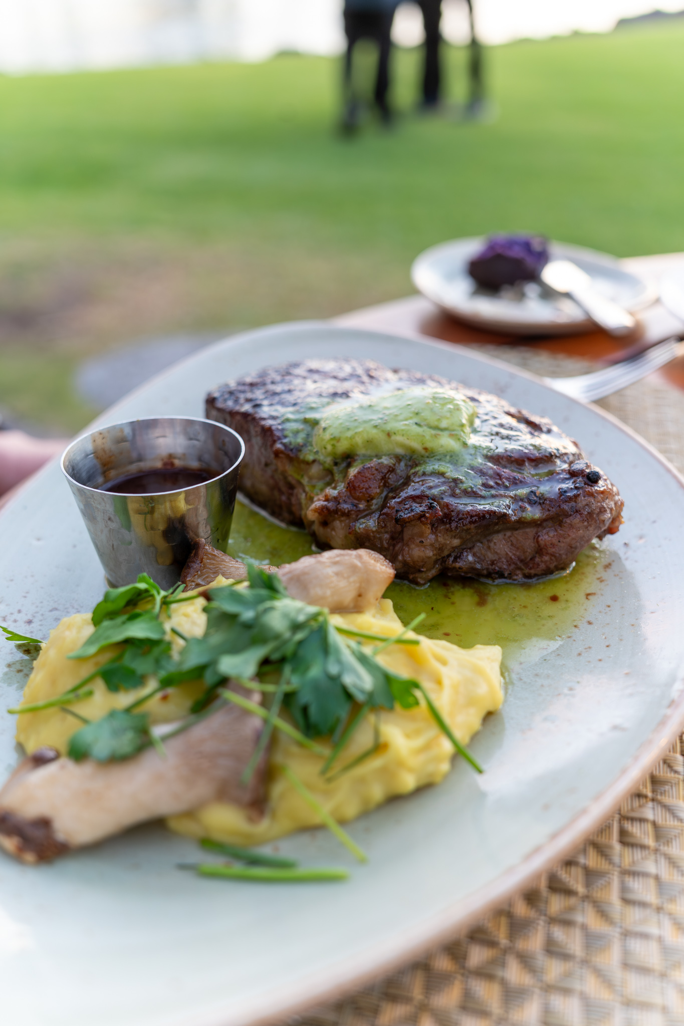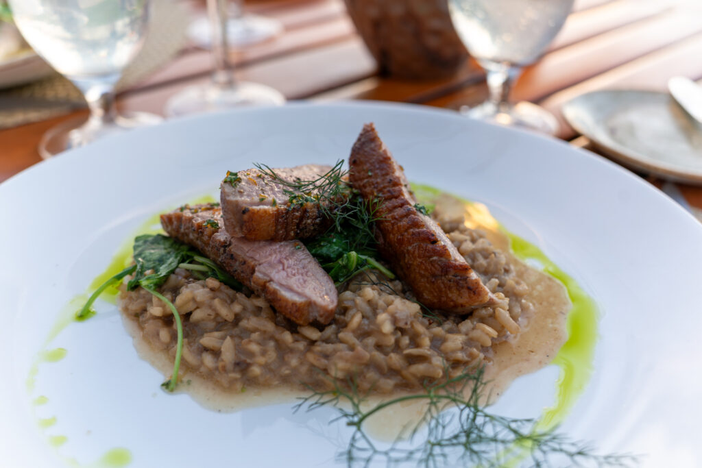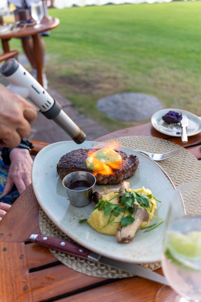 For our mains, Andrea ordered the Dry Aged Ribeye ordered medium rare (I was a bit surprised she ordered this when her go to is usually filet mignon, but since ribeye was my go to, I certainly wasn’t complaining) and I had the Duck Breast special ordered medium rare. Andrea’s ribeye was also topped with some a sort of chimichurri butter which was torched tableside. Her steak was cooked perfectly and was very tasty and also came with a rich red wine jus. My dish though was a bit of a disappointment. The duck was overcooked and was nearly well done (again, I had ordered medium rare). The mushroom risotto had a very strong mushroom flavor which I enjoyed, but the risotto was just mush texturally.