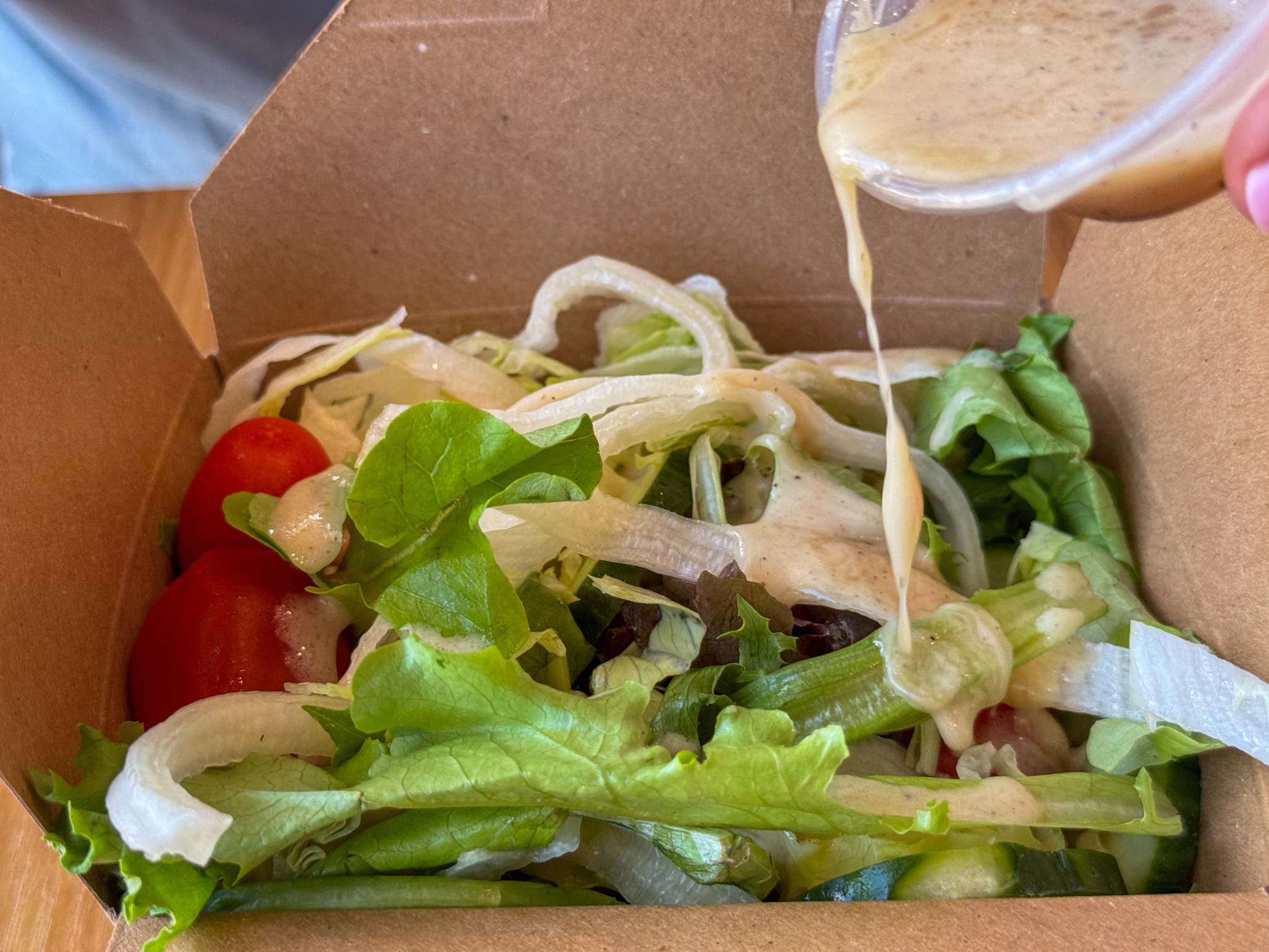 We had just landed and were trying to find somplace quick to eat. We went into the food court at the Queen’s Marketplace in Waikoloa. Ramen sounded good. Andrea ordered a green salad, the Tan Tan Ramen, and I had the Tonkatsu Ramen. I also ordered some Friend Chicken Wings. It was all pretty meh, but ok enough to at least put something in our bellies. Broth on the ramen was not particularly flavorful and the noodles seems like instant noodles. The wings were freshly cooked, not much seasoning at all on them so Andrea didn’t care for them, but it was still fried chicken so I ate them all. Overall, mediocre, but it is a food court and we were starving.