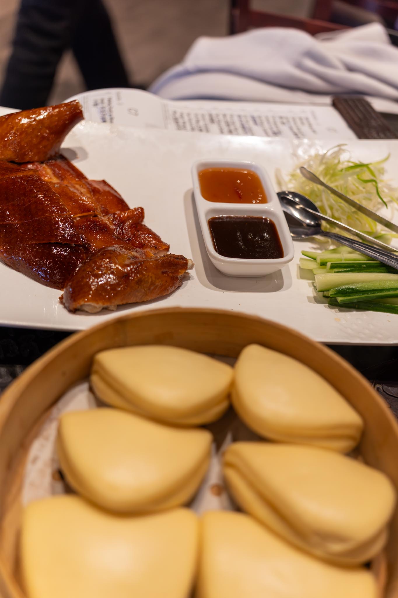 We ordered the Five Guys XLB as well as the equivalent in the har gow which seemed new to the menu. We ordered some pea shoot dumplings, char siu bao, wagyu beef pan fried bao, Chinese broccoli in oyster sauce, and a half order of Peking duck (last times we’ve ordered peking duck here, it only seemed like they had full orders so this was to not order too much). For dessert, we had the red bean sesame balls and the Portuguese custard egg tart, but we were so full that we didn’t quite finish them and took them in to go boxes, but all in all, it was delicious and we didn’t over order much.