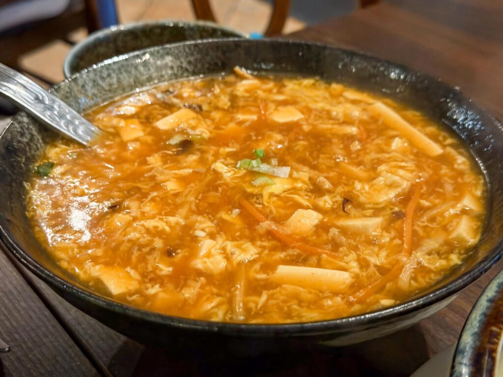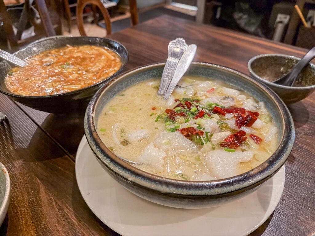 String beans arrived first. I don’ think we’ve ordered them here before since we usually get the pea shoots. They were well seasoned including some Szechuan pepper which was nice. Overall a bit too greasy though. The green onion pancakes which were pretty much what you expected and it was nice to have a crispyish component to our dish. Also a bit greasy, but a touch of vinegar helped cut through some of that. Hot and sour soup was fine which also featured some Szechuan pepper. Was nice to have for a cold day. The Szechuan Fish was also basically a soup because of all the broth. The fish was well seasoned with Szechuan pepper as advertised. Broth was also lightened up with the pickled cabbage which gave a sour acidic component. The owner came by and said it was her favorite dish. It was a nice alternative and something different although personally, I don’t know if I’d get it again.