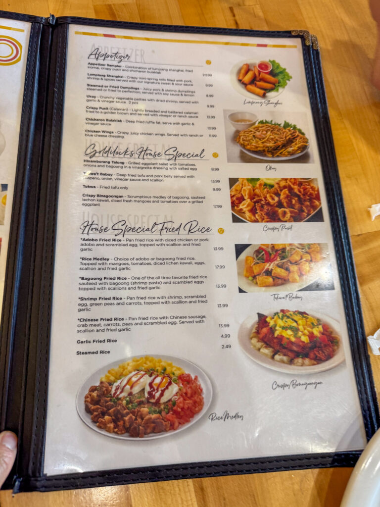 We had to eat at Goldilocks and Tita Pye was joining us. so we ordered a lot of food – Sinigang, Barbeque Pork, Pancit, Garlic Fried Rice, Crispy Pata, Beef Kare-Kare, Crispy Pusit, Fresh Lumpia, Halo-Halo, and Leche Flan. I ate a bit of everything of course.