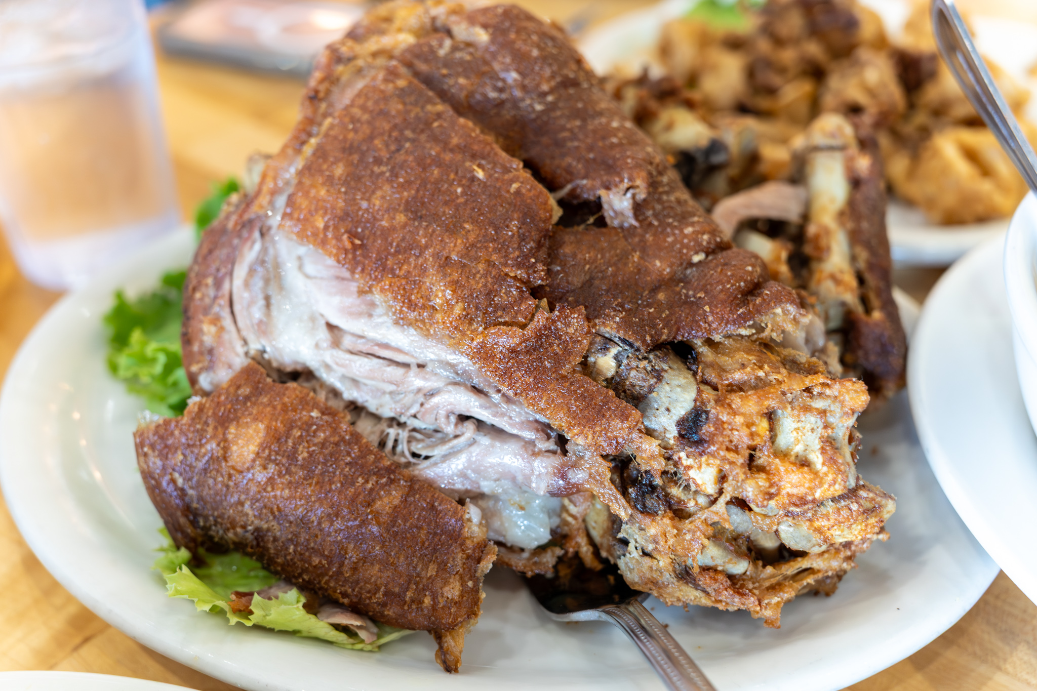 My favorite was the Crispy Pata thanks to that crispy deep fried skin and the tender and moist pork meat. Yum. They also had house made Mang Tomas as well as bagoong since those are no longer legal to import in the US. The BBQ Pork was good, but I think my dad’s is better (he uses pork shoulder I think). I didn’t like the kare kare as much because it was beef (prefer oxtail) and the sauce had some tripe in it which I didn’t really care for (apparently I used to love tripe when I was a kid though).