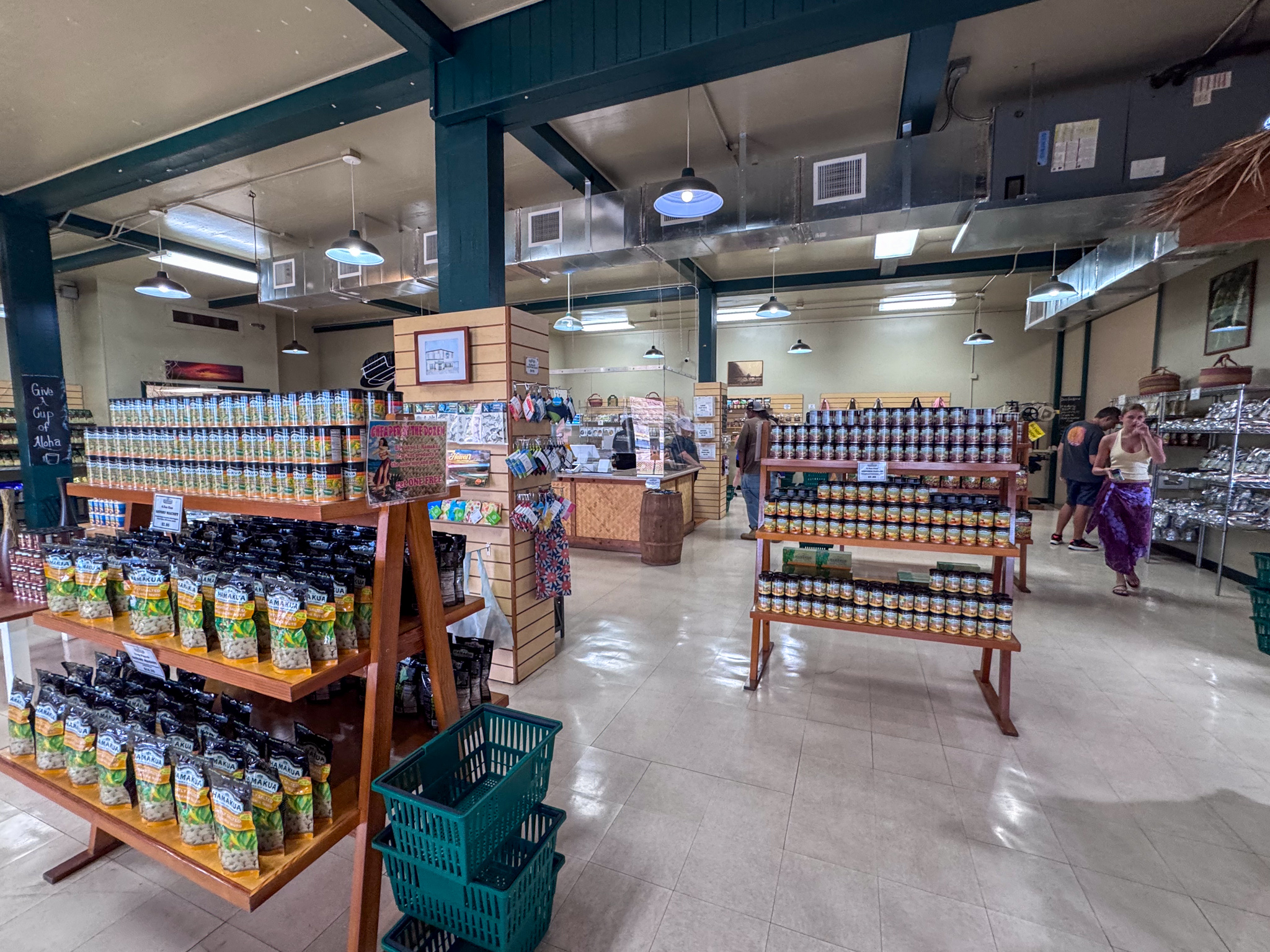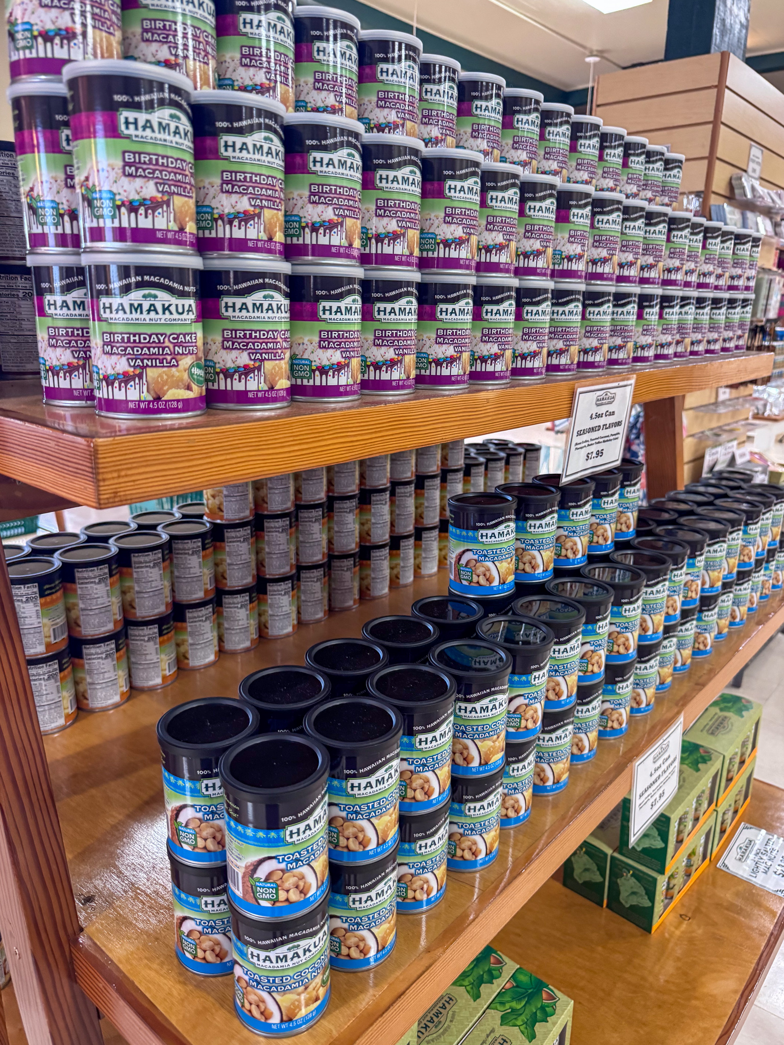 Andrea wanted to go here, so we stopped by on our way back from Hilo. We’ve been in this area of the island before, Kawaihae, but not exactly on this street which was all seemed industrial until you went up the driveway to get here. The shop offered samples of their various nuts. I did try the Spam one because, well Spam of course, but it really didn’t taste like much. I ended up getting the Kona Coffee Glazed and just the Lightly Salted and Andrea bought the Dark Chocolate Covered Butter Rum Glazed. I was surprised she didn’t get the Chili Peppah one though. I also nagged her into getting the Sea Salt Caramel Macademia Nut popcorn which we actually ended up totally scarfing down later that evening when we were chilling and watching TV. We should have purchased more!