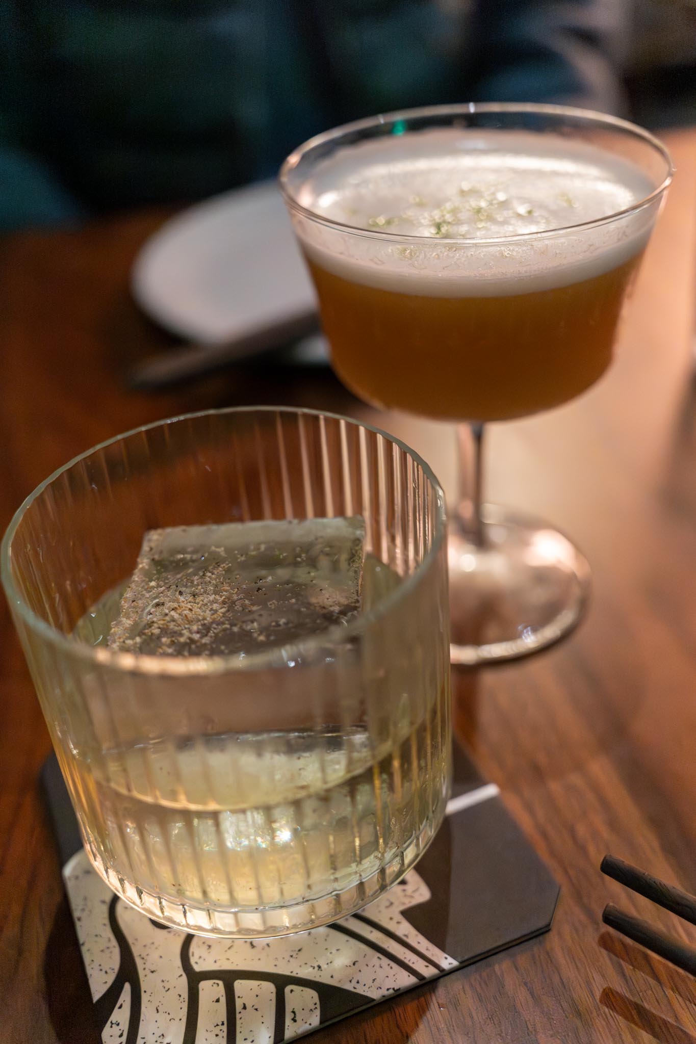 We also started with cocktails. I had the Serpent’s Kiss which was a tequila and mezcal based cocktail with apricot, miso, mustard, pommeau, citrus and whey. Andrea had the Heilong & Tarantasio which was even more intricate than my cocktail and had “bacardi cuatro, santa teresa 1796, cognac, gin, rosolio bergamotto, earl grey, pandan, five spice, cacao, mascarpone, clarified.” Whew! With all that, it was surprising to see that her cocktail was a clear one. Both were interesting and good, but not the best cocktails in the city, but then again, we have a lot of great cocktails here. They were interesting and unique enough though that I would try other cocktails next time we’re here.