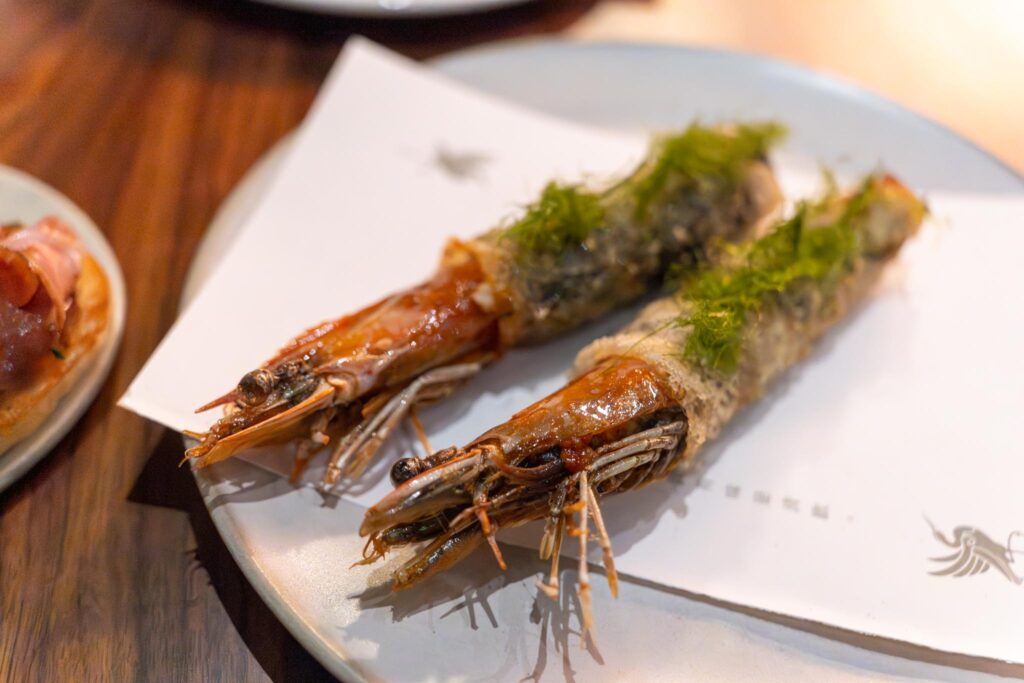 Soon after came the firecracker shrimp which was an interesting take on an egg roll with the body of the shrimp being wrapped in nori and a batter and fried crisp with the fried head sticking out the top. The shrimp had a mala glaze and the nori and shiso all gave it just a bit deliciously flavor. I also ate the head because that’s the most flavorful part of the shrimp.