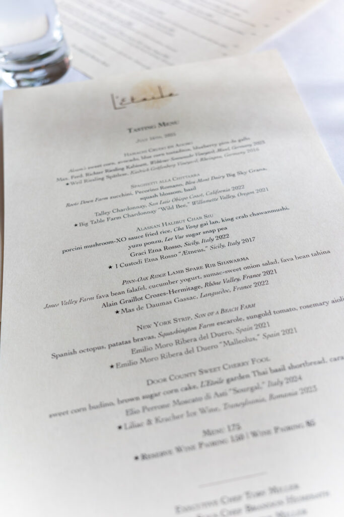 The dessert course was the Door Country Sweet Cherry Fool. Andrea and I were married in Door County where her parents had lived and so we have a soft spot for Door County cherries. This dish was a sweet corn budino with Thai Basil (from the L’Etoile rooftop garden) shortbread, cherries of course, topped with a brown sugar corn cake. We absolutely loved this dessert (and we’re not always big dessert people) with the fresh ingredients thoughtfully combined and composed.