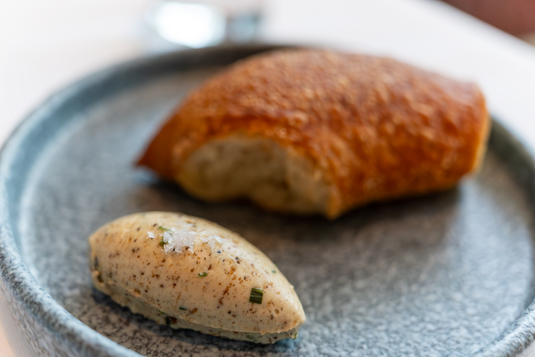 We went with the tasting menu (although Andrea was tempted to go a la carte since there was a chicken dish that looked interesting to her and she could also get the cheese course) and did one of the standard pairings ($85) and one of the reserve pairings ($150); there is also a Cellar Gems pairing for $225, but we didn’t want to go with that since we weren’t sure how good their pairings would be.