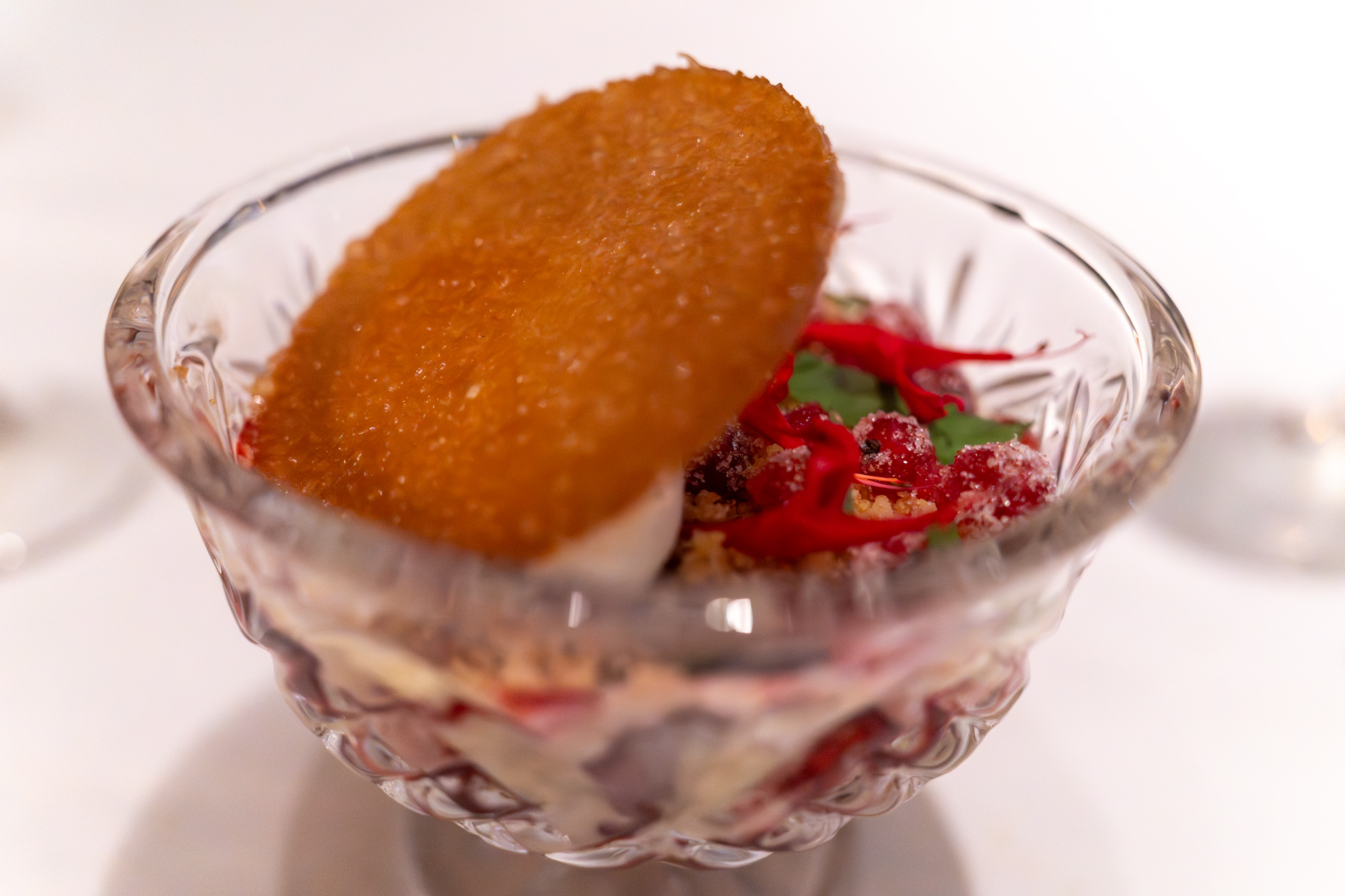 We were then given a sorbet as a palate cleanser. The fun thing with this is that it was topped with a bit of grated cheese. Very on-brand for Wisconsin and we enjoyed that.
