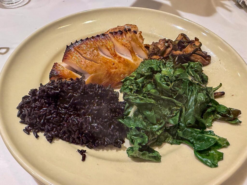 Since we were at Billingsgate for lunch, we decided to pick up some fish while we were there. We decided to do something a bit different from our usual salmon so we went with the miso cod which we’ve never made at home (and is one of my favorites). Easy enough, just broiled it for until it browned up. Andrea made some black rice and kale for sides. We were down to our last bottle of sake, Nabeshima Junmai Daiginjo “Akaiwa Omachi” that we had purchased from True Sake, but it seemed like it was a good option for our meal. It was delicious and so easy. I’m sure we’ll do this again! Now I need to order more sake!