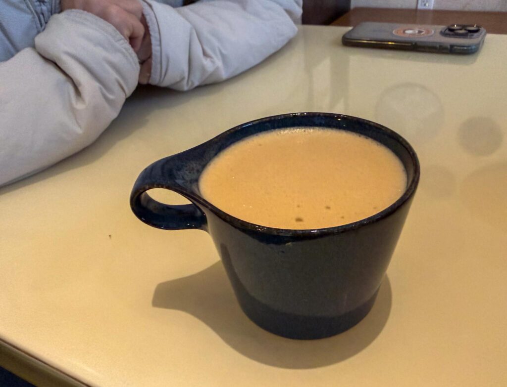 The Andreas were meeting for morning coffee to plan our winter block party and I tagged along. Andrea P. got a chai; Andrea S., a latte; and a matcha latte for me. Not crowded at all at this hour, but it did become quite a bit more crowded even as we just say here to finish our beverages.