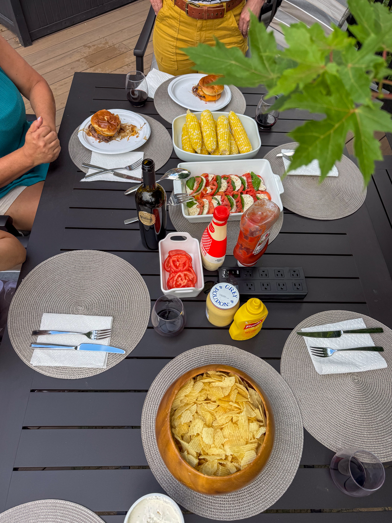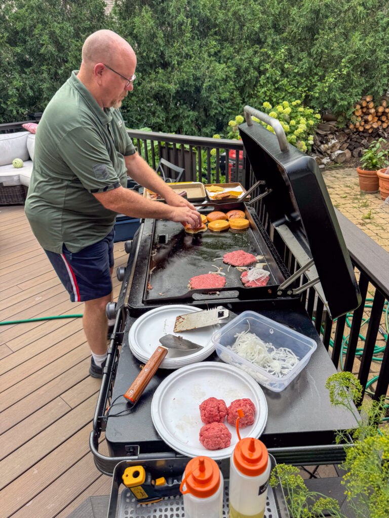 We drove down from Madison to Kristine’s place. Kristine and Britten had things in full swing already. Lili and Dave were there with some Bella Union and Nickel & Nickel wine (yum!). Britten was frantically busy on the flattop on the grill making smash burgers. They were double cheese with bacon with buttered and grilled buns and turned out great! Thank you all for the great wine and food!