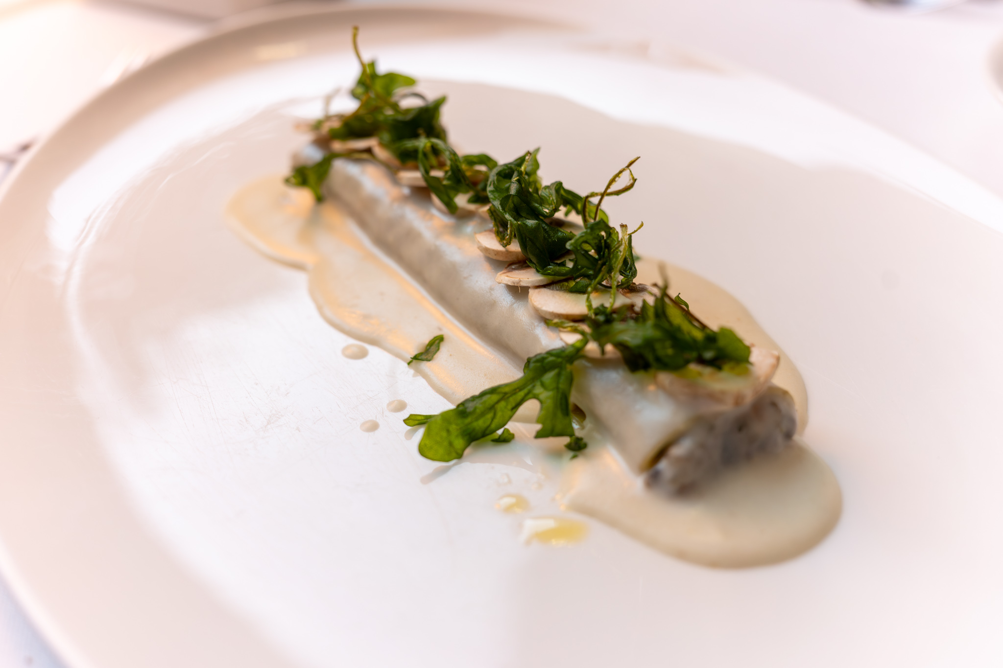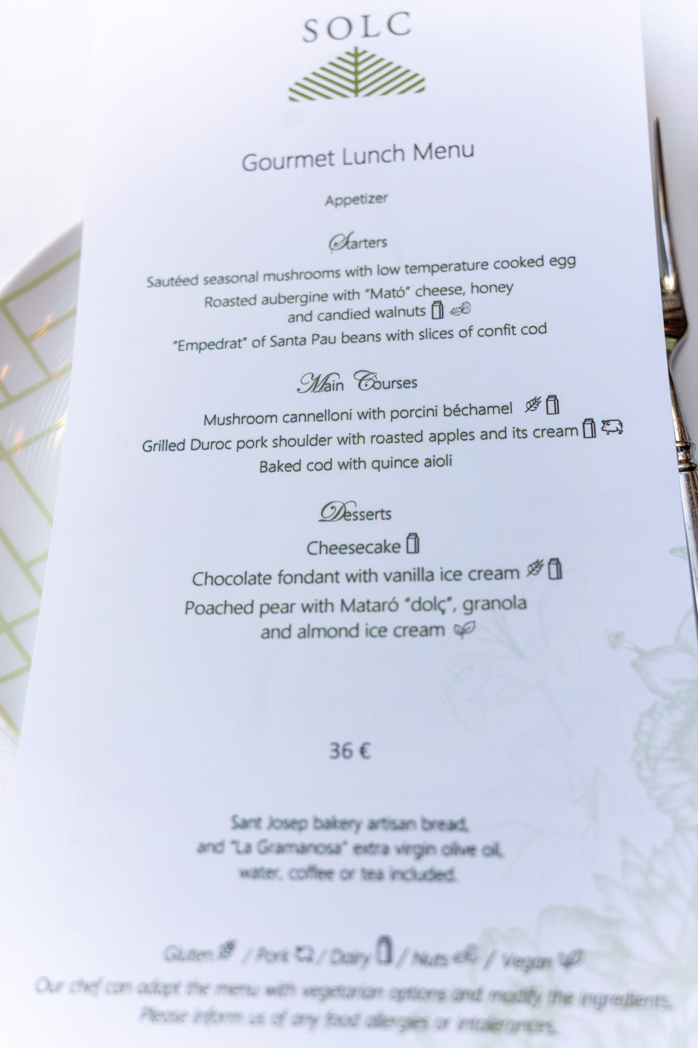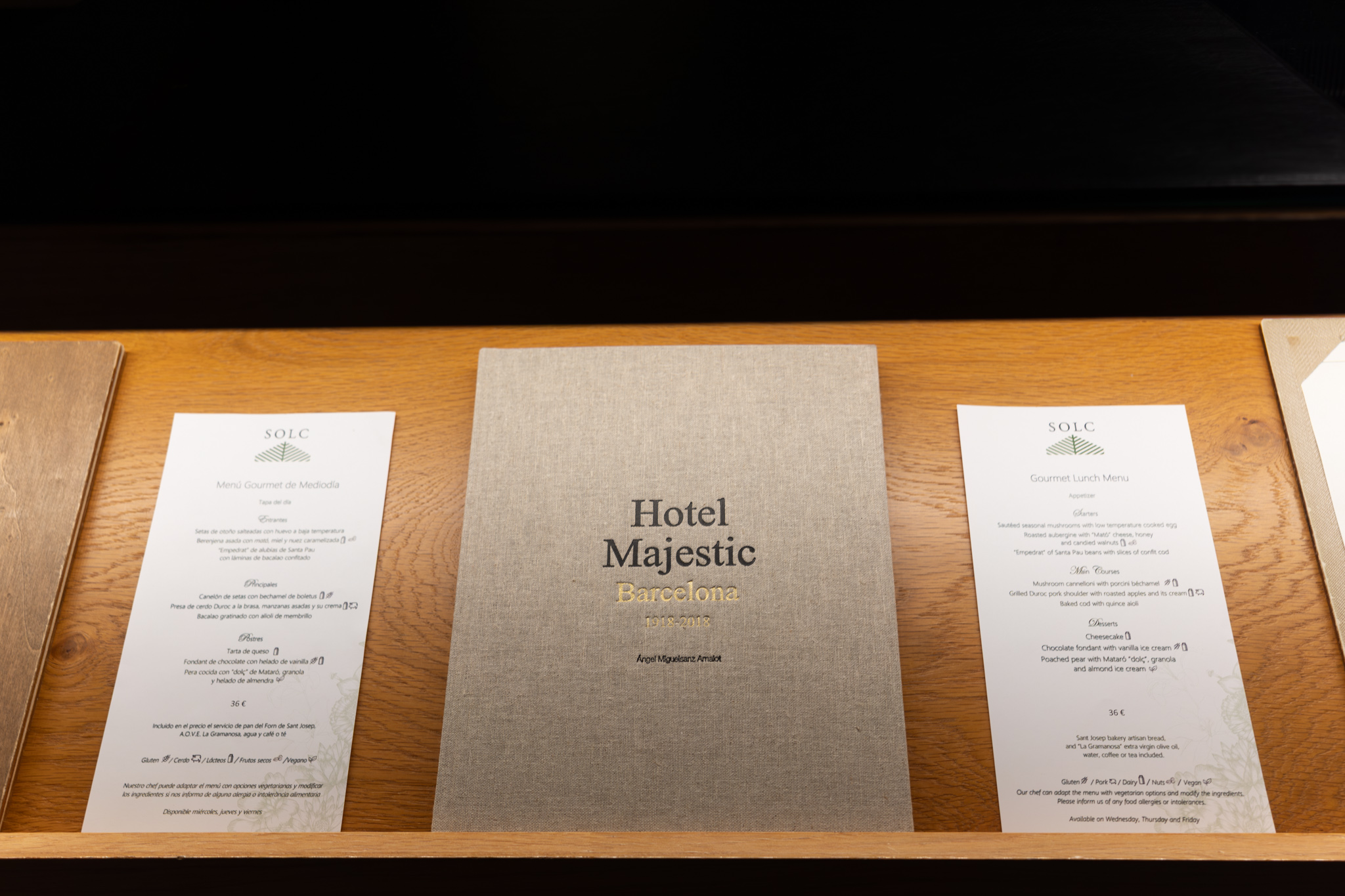 We were just wandering back towards Pg. de Gràcia since we were curious about the White Rabbit Experience/Museum and were just looking for someplace to eat. We stumbled onto the Majestic Hotel and decided to check out their restaurant. It looked like they had a menú del día/prix fixe lunch that looked pretty good and we were there already so we went ahead and asked for a table. We were seated in an area with floor to ceiling glass with some foliage directly outside. There was only one other table seated.