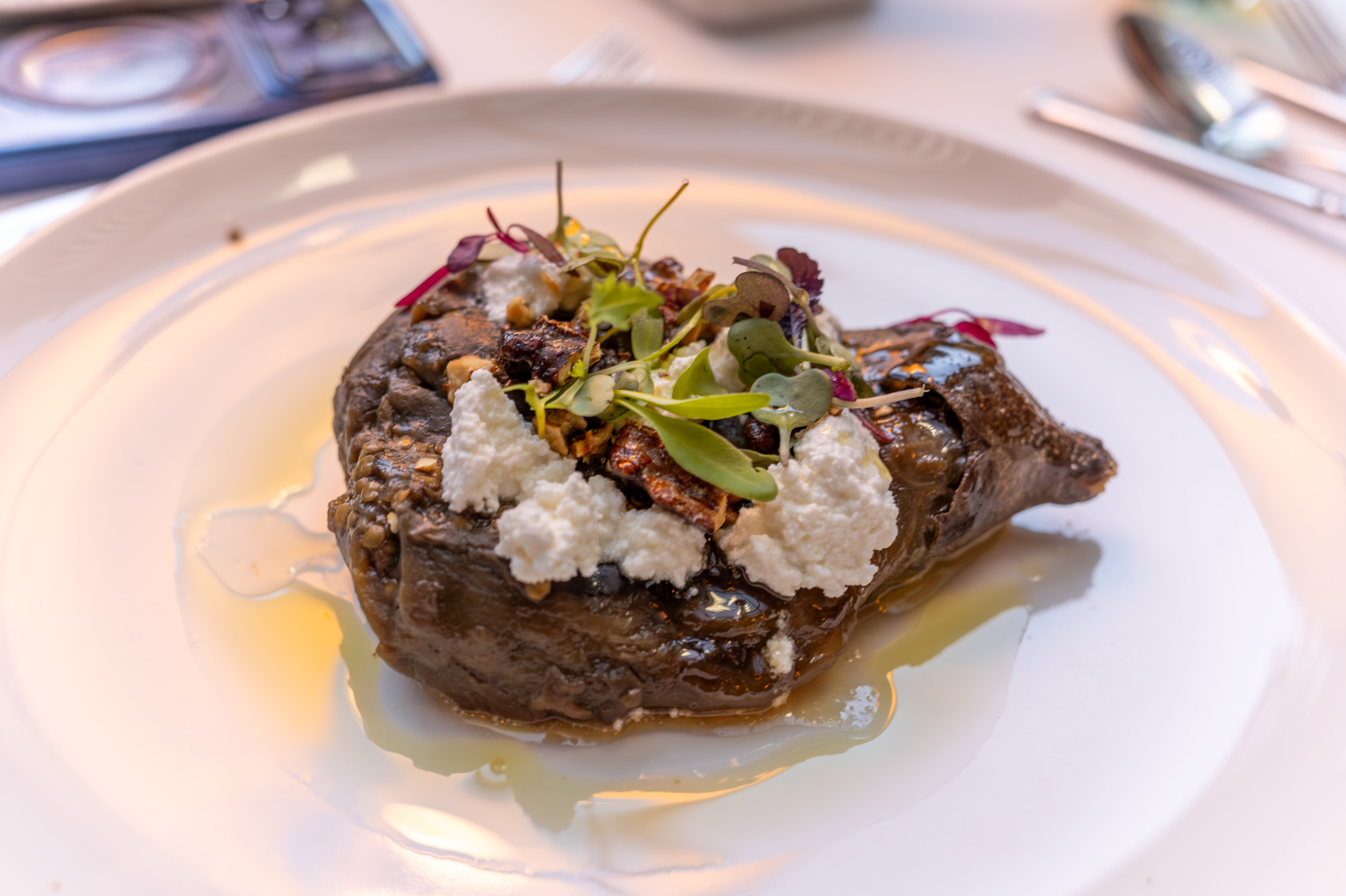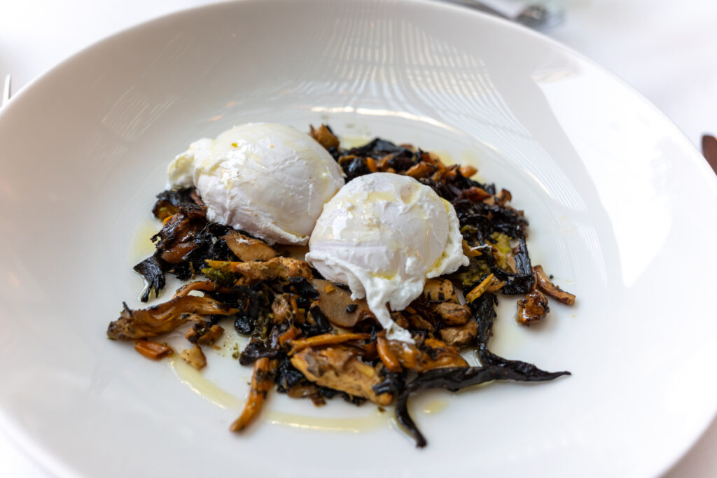 Andrea ordered the Roasted aubergine to start and the Mushroom cannelloni for her main. Ginny and I both went with the sautéed mushroom with poached egg to start and the Grilled Duroc pork shoulder for our main.