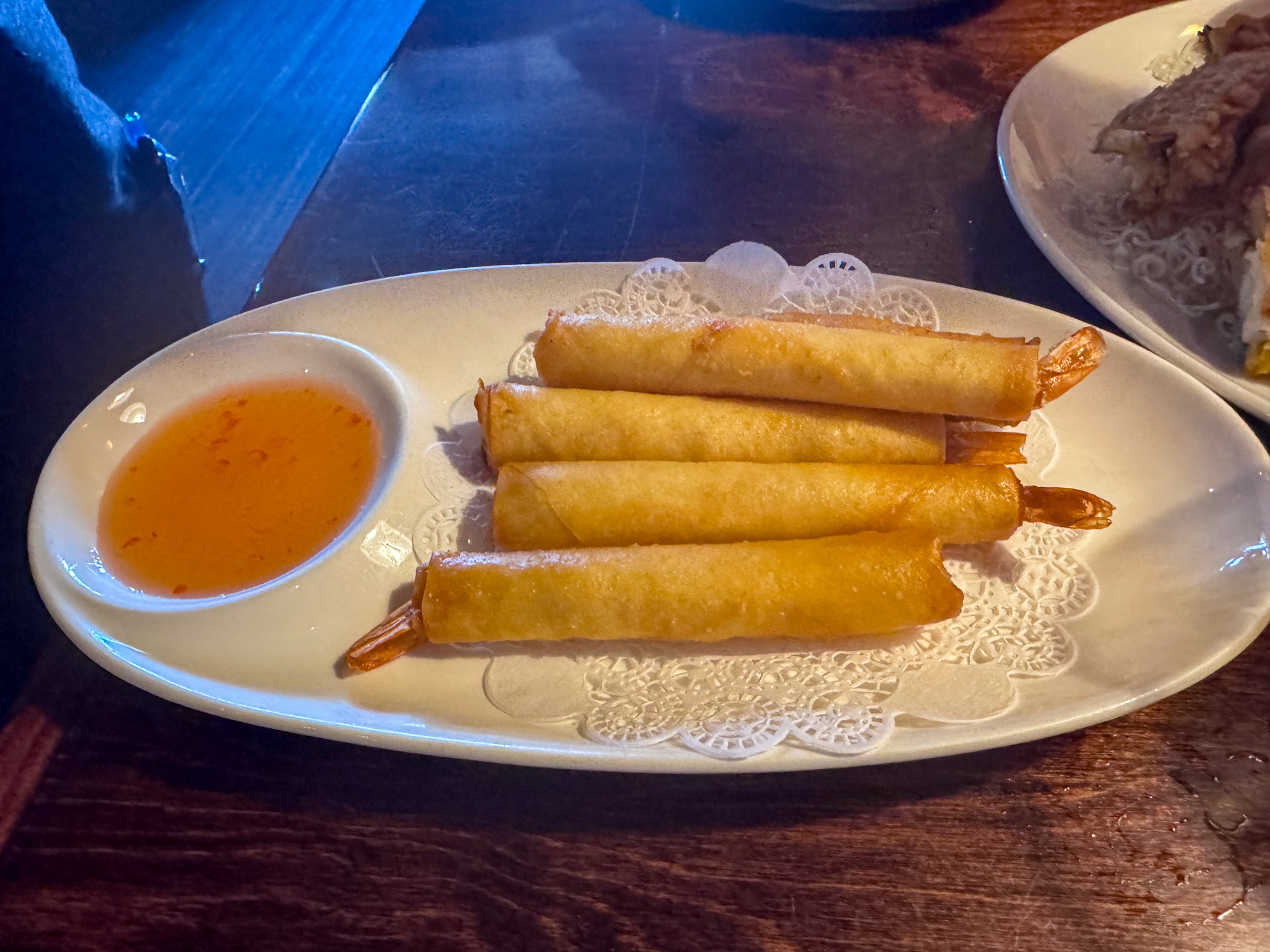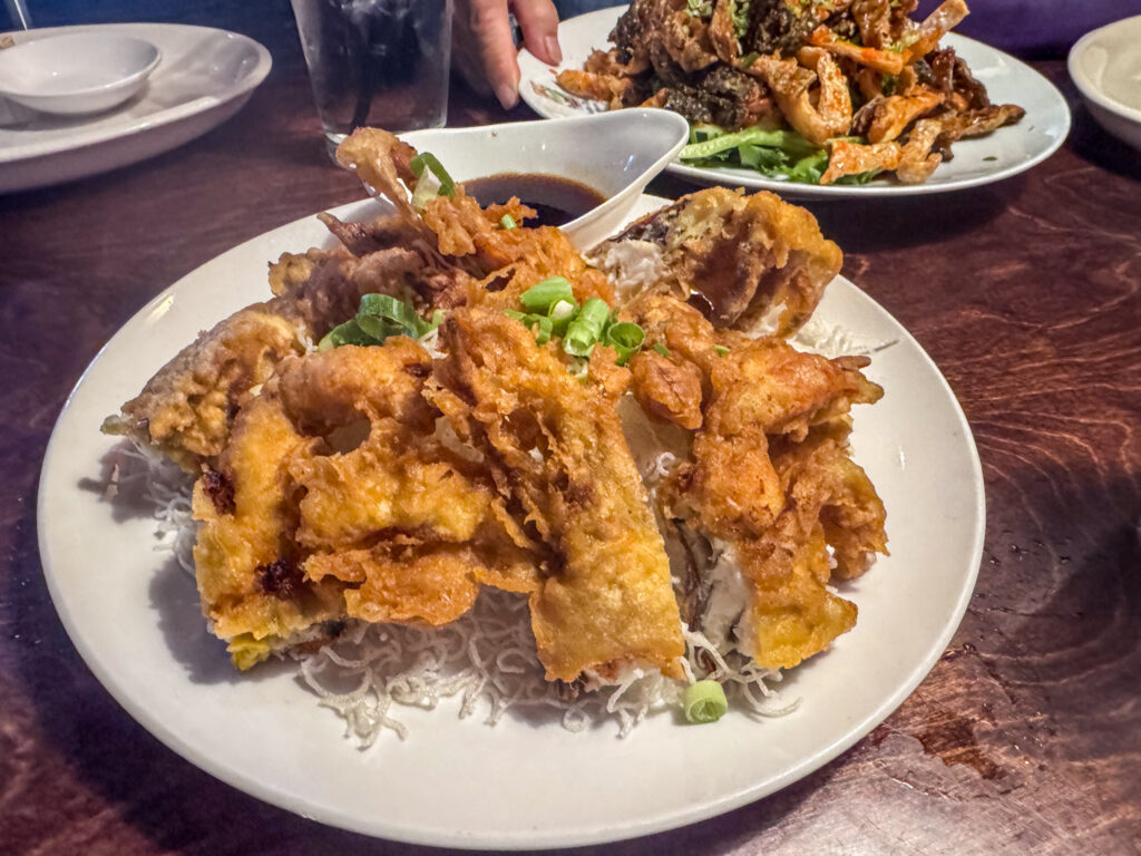 We orderes fried softshell crab and also Firecracker Shrimp. The softshell crab was as you would expect. The Firecracker shrimp was a shrimp in a springroll type wrapper and deep fried, not exactly what I was thinking of for something called “firecracker”; it was so so.