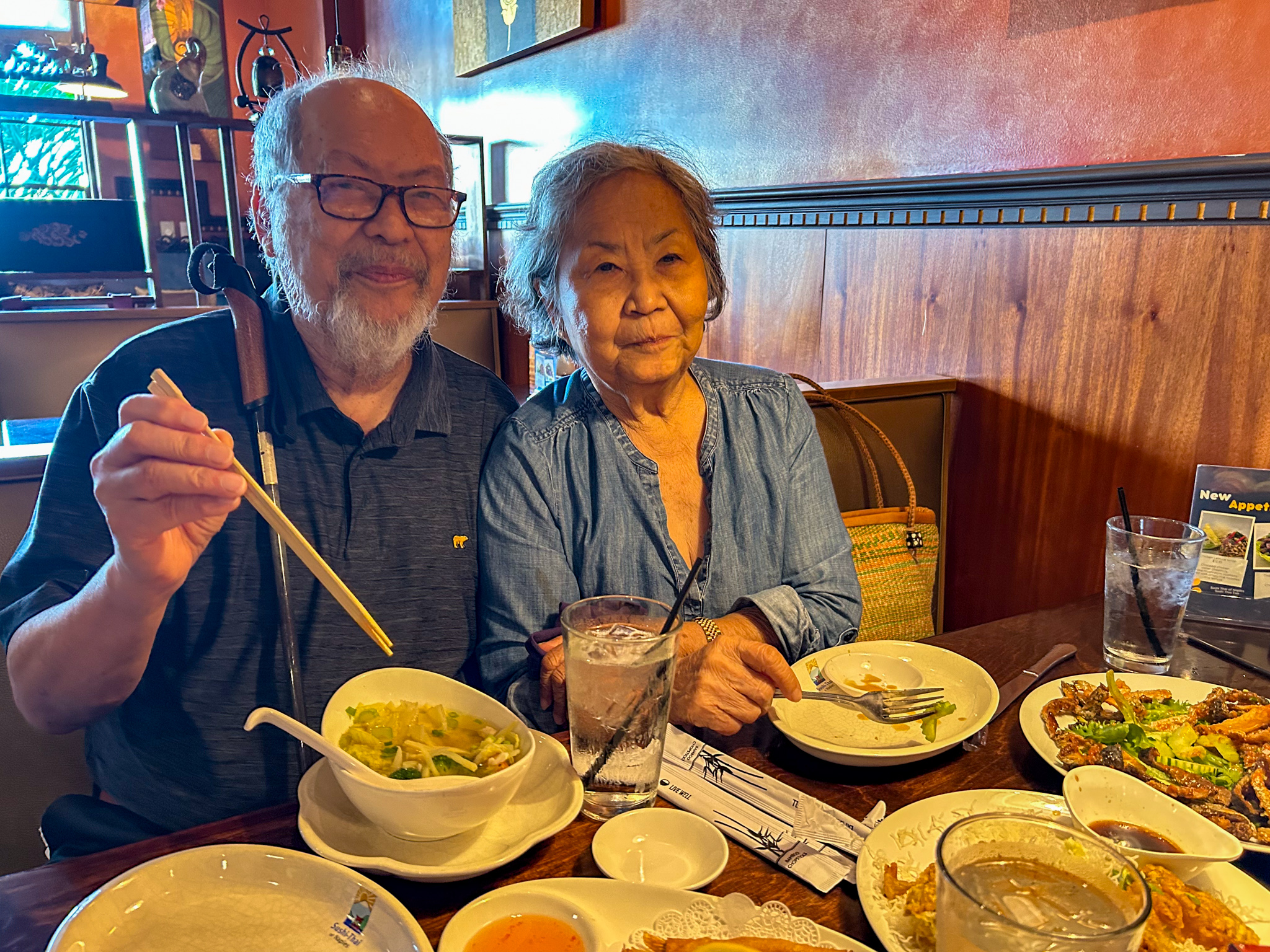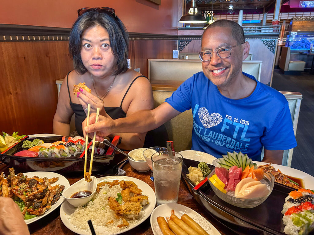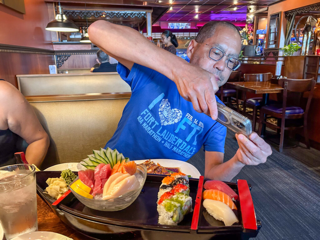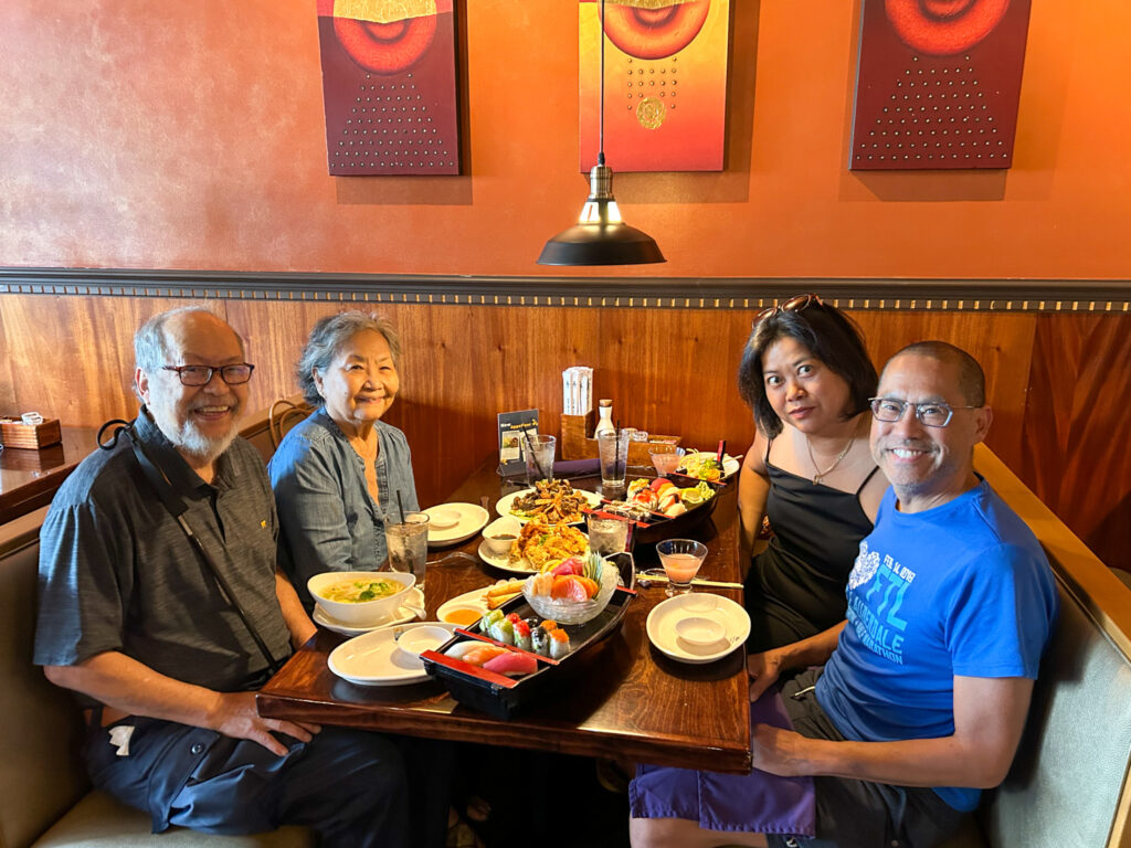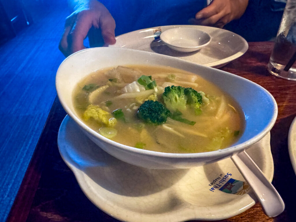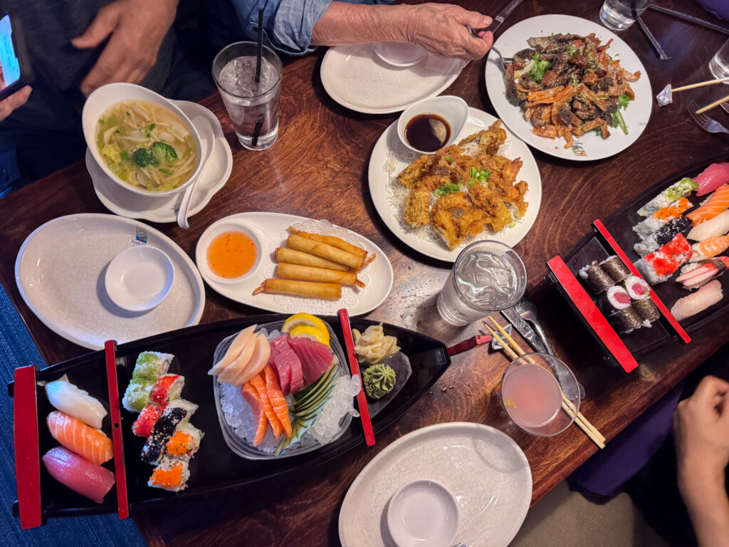 Had dinner out with my sister Ginny, visiting from Lanzarote, and my parents. Went to one of their usual places, Sushi-Thai. Not surprisingly, their menu has both Thai food and sushi, I’m guessing to better appeal to the locals with a pan-Asian menu (I’m also assuming that Japanese cuisine is more popular/mainstream than Thai). I’m always a bit skeptical of a place that does multiple cuisines as well as seafood on a Monday.