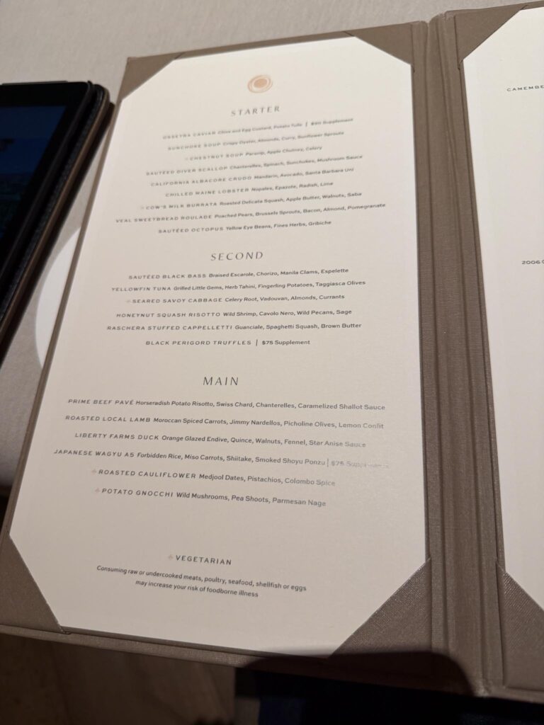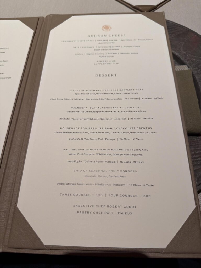 This was our first evening after driving up to Napa. After a lot of our meals, Andrea always talked about being able to just go up to our room right afterward instead of having to drive or take an Uber/Lyft/Waymo back. So, this was our chance since we were staying on property at Auberge du Soleil.