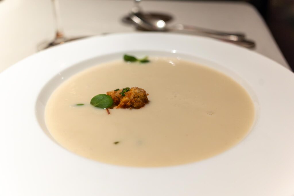 For our first courses, Andrea had selected the Sunchoke Soup which came with a crispy oyster. The soup was nice, although Andrea didn’t want the oyster so I ate it. The breading strongly reminded me of something like friend shrimp at Red Lobster or some other less expensive establishment.
