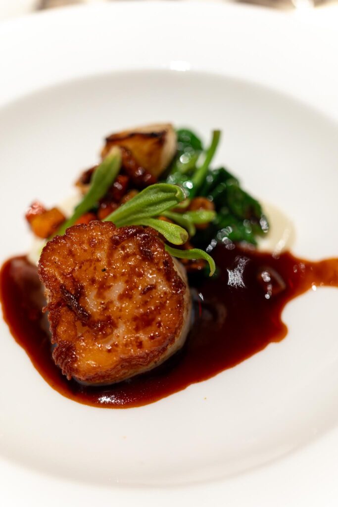 Andrea would slow eat her dish, partially because she wasn’t particularly hungry and also because she would only receive one of her dishes for every other one of mine. So my second dish was the Sauteed Diver Scallop. Very nice sear on the scallop and it was accompanied by chanterelles, sautéed spinach, some sunchoke, and a mushroom sauce. Decent dish overall.