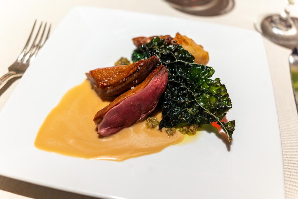 My next dish was the Paine Farm Squab. This featured some cavolo nero kale prepared two ways, sautéed and fried. The fried preparation was nice since had a crispy texture. The other interesting components was the polenta which was made as tempura. The squab was cooked perfectly and wasn’t gamey at all. It came with a rosemary jus which was something interesting and different.