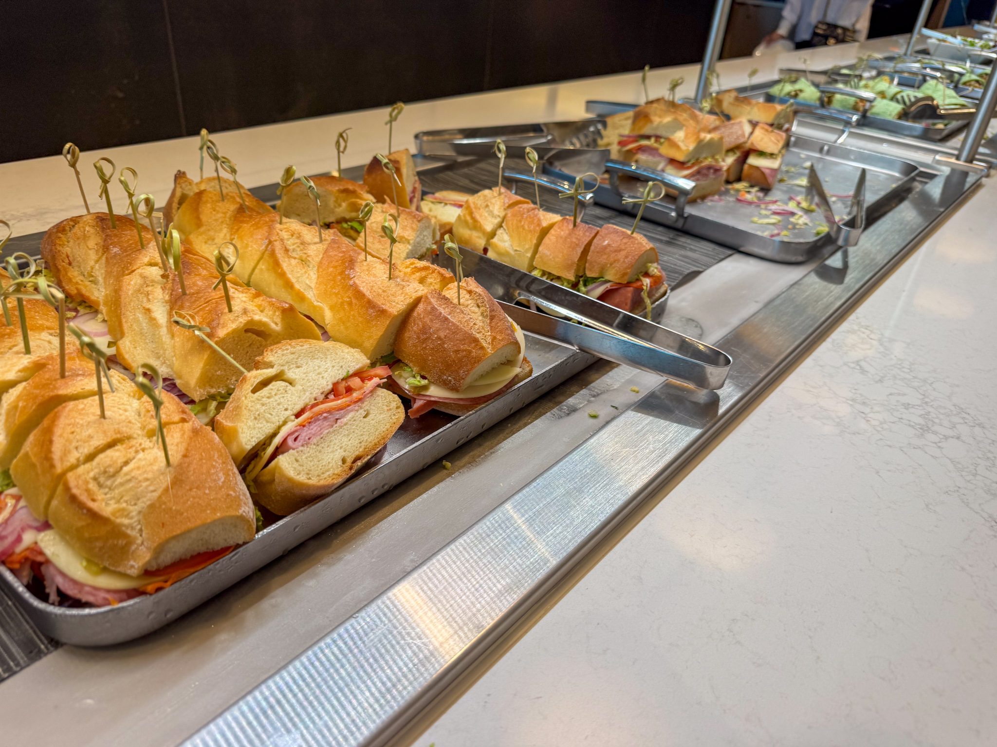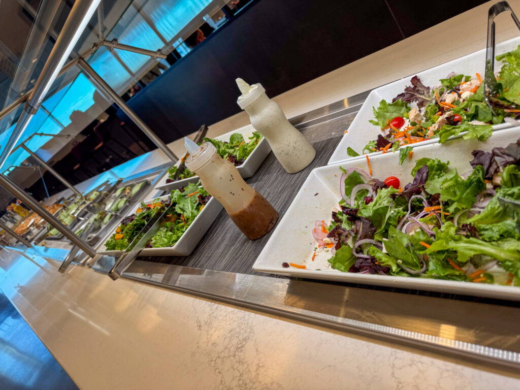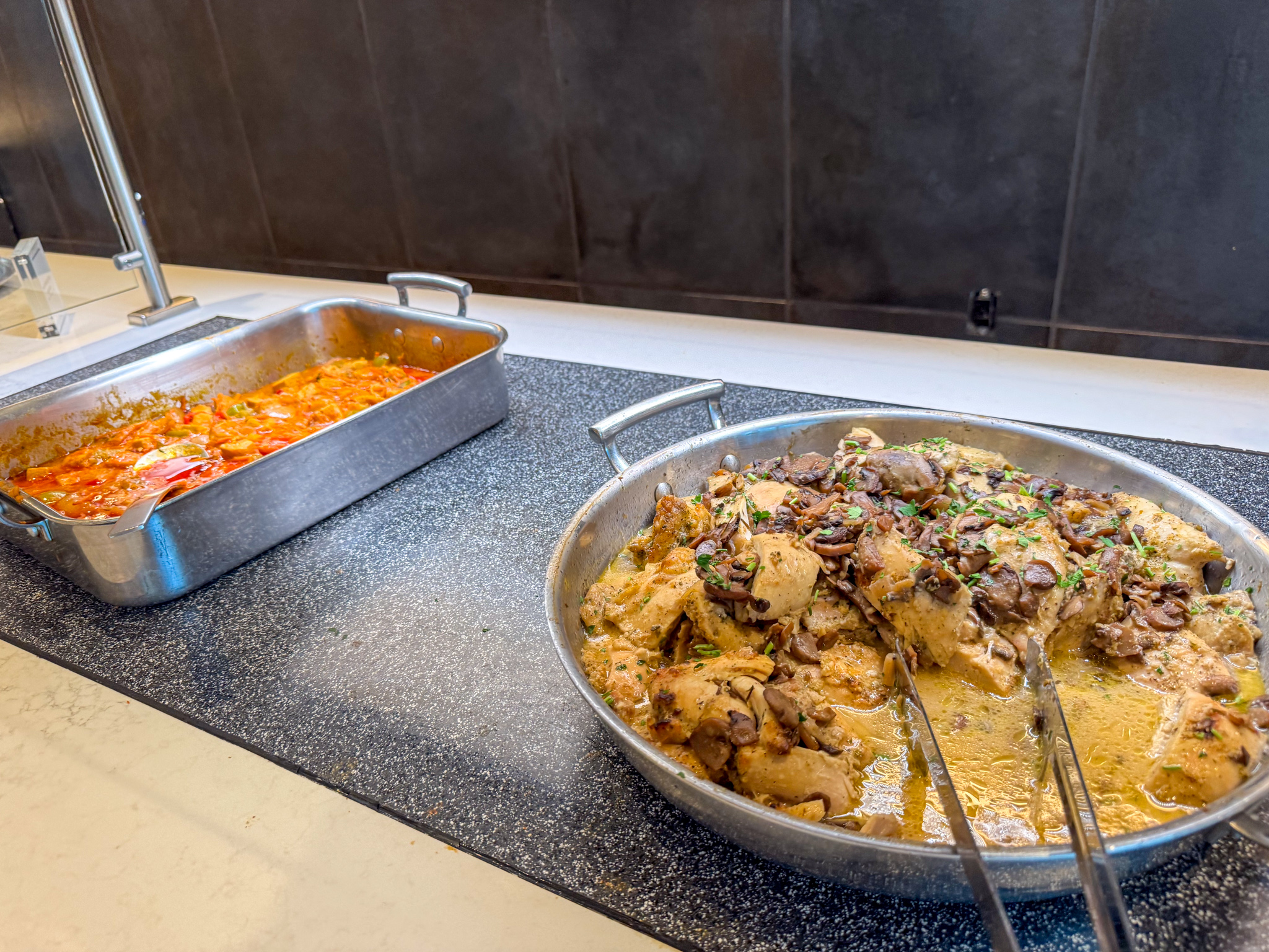 I had a fairly short connection so was glad I had about 20 minutes in the United lounge at Denver not too far from my gate. There are two floors for the lounge here and although it was fairly busy, it did not feel crowded at all. Salad was standard (i.e. meh), but the warm food looked much better than what we seem to find in the SFO lounges. I was sufficiently satisfied with the chicken marsala, esp. since I could pick dark meat/thighs. Fast, efficient, not too crowded, and near my gate. No complaints!