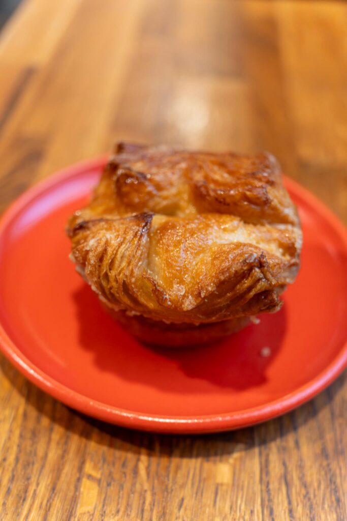 I started with a koiugn amann and a matcha latte. I don’t normally do a lot of pastries, but they looked good and the koign amann did as well. I thought it was ok. Would have liked it to be a bit richer, butterier. I have no idea what a traditional one is supposed to be like, but that’s a bit more of what i was looking for. My matcha latte was a chai latte instead. Oh well. It was so so.