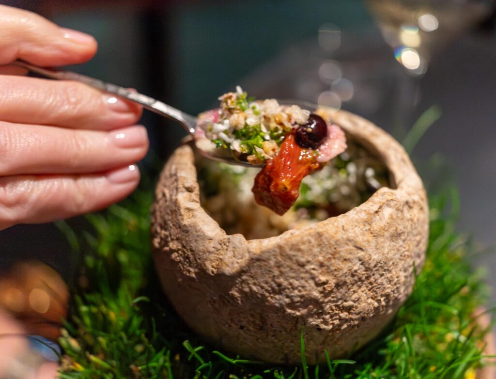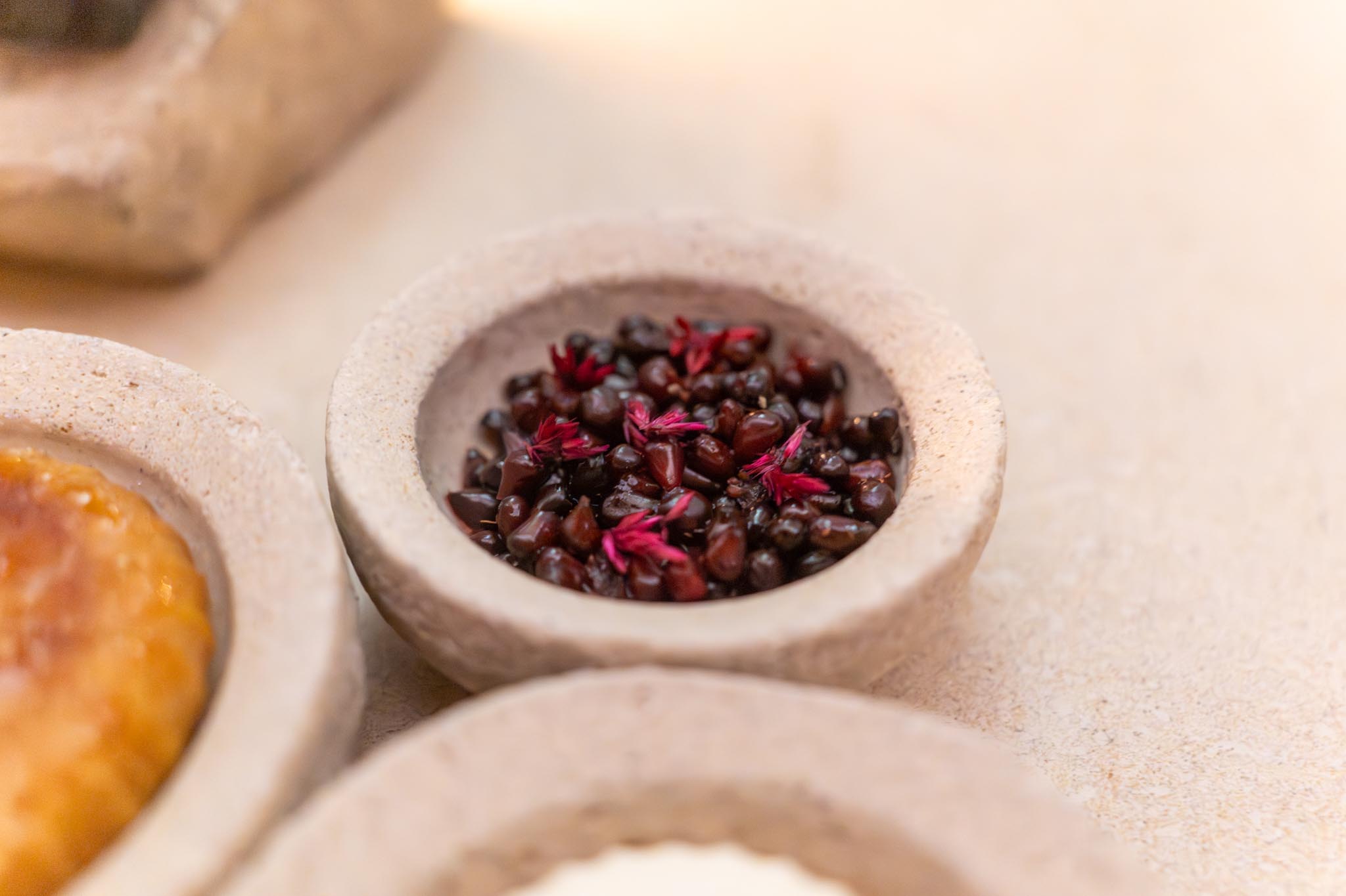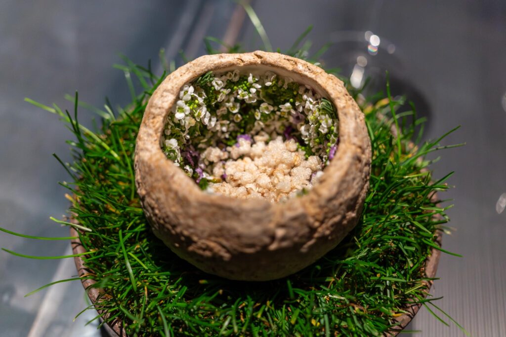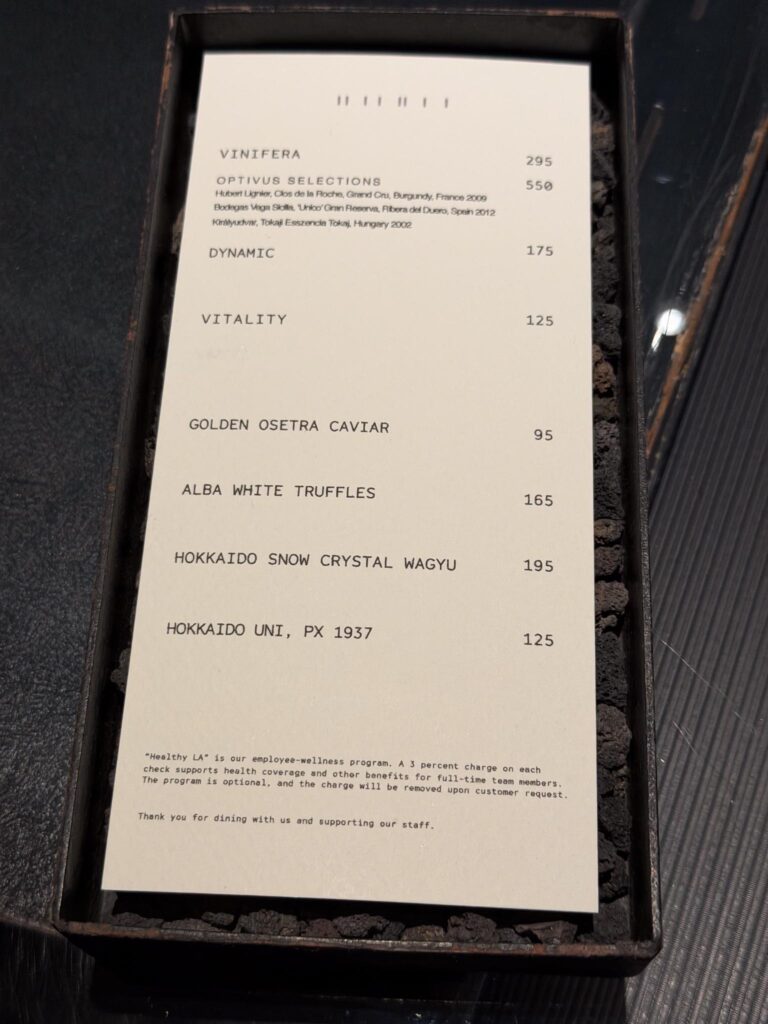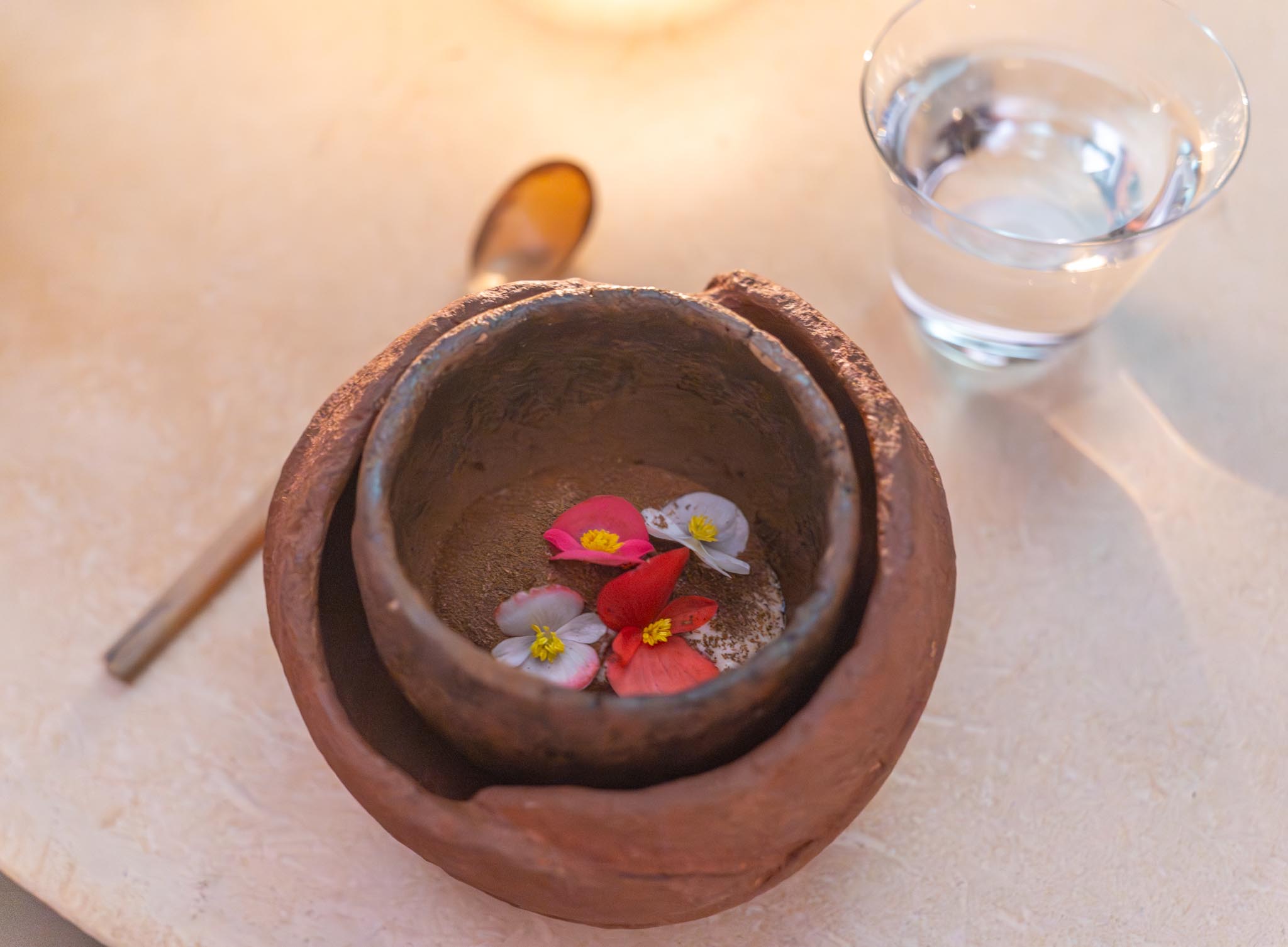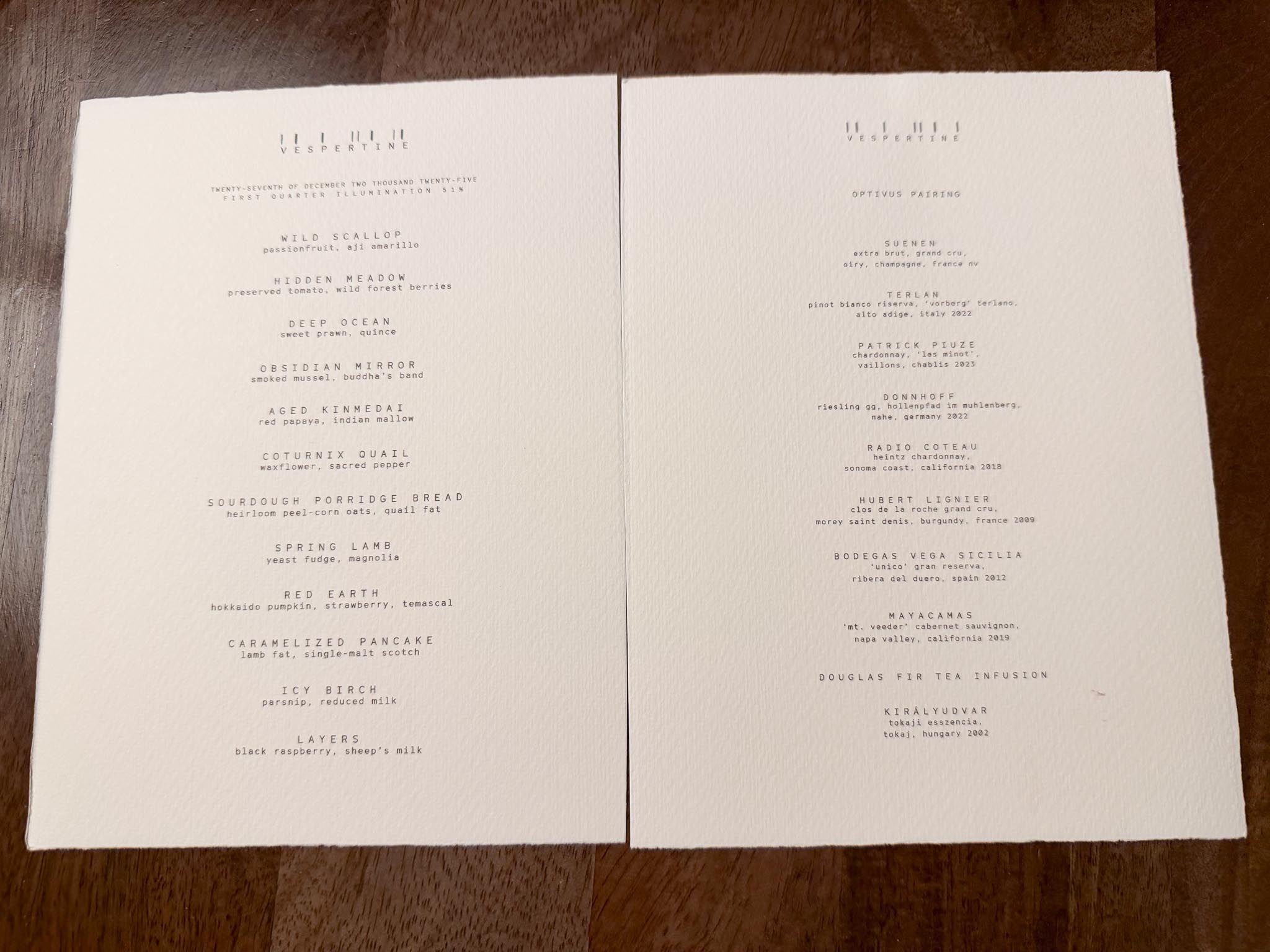 This reads as a pivot point: the transition into land proteins. Quail is delicate but flavorful, and waxflower plus sacred pepper suggests aromatic, floral spice rather than heat. We’re imagining something gently roasted, maybe pink, with a sauce that leans perfume-forward. Could be a standout if the balance is right.