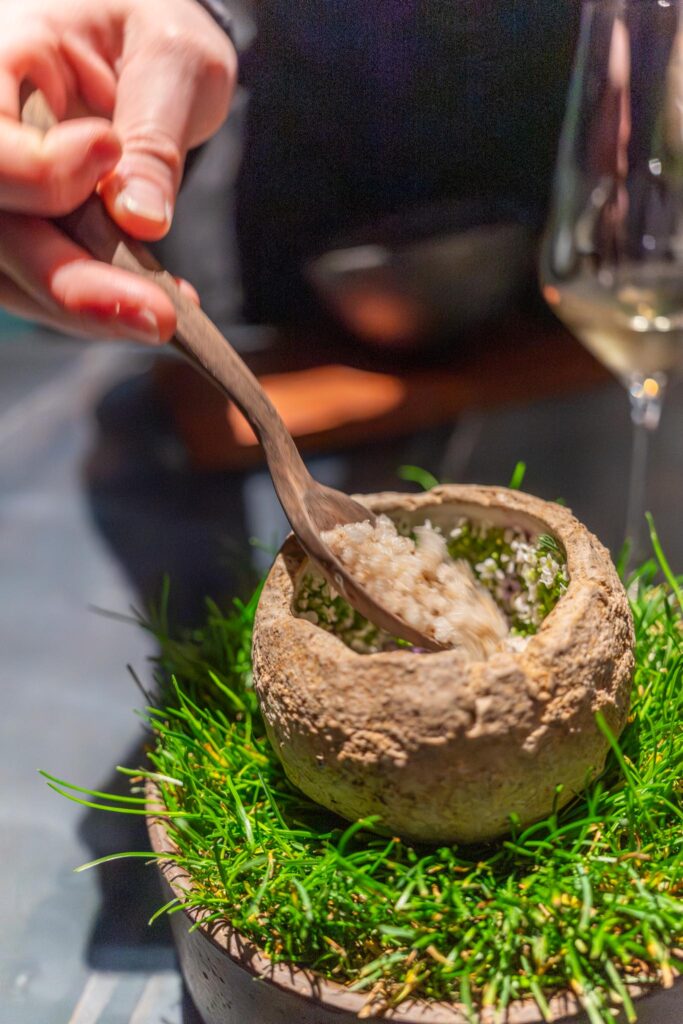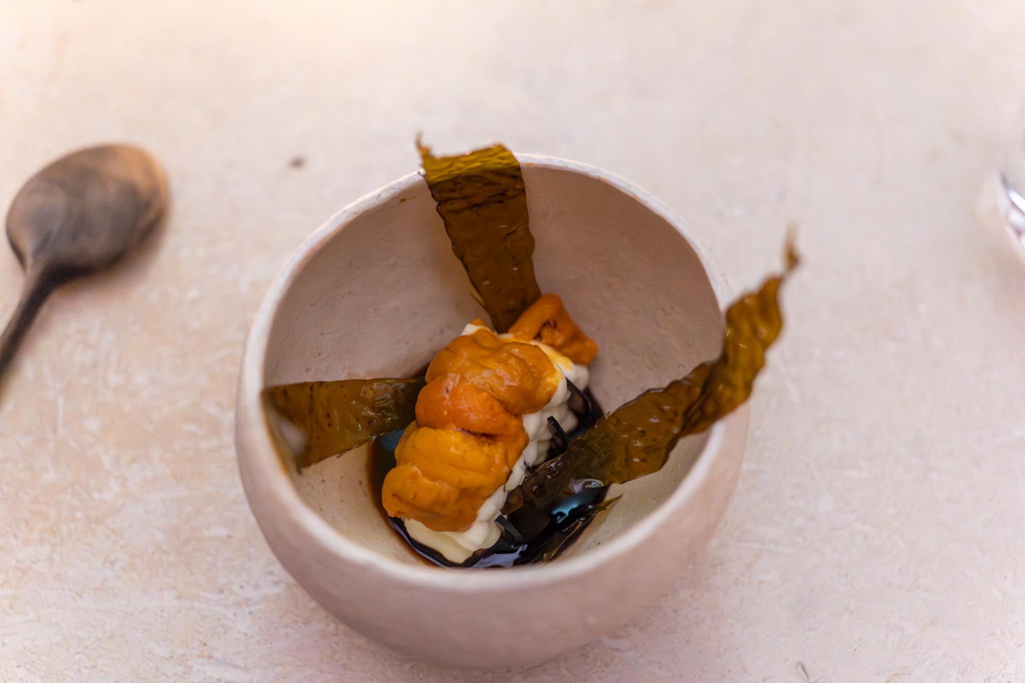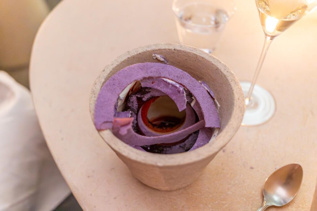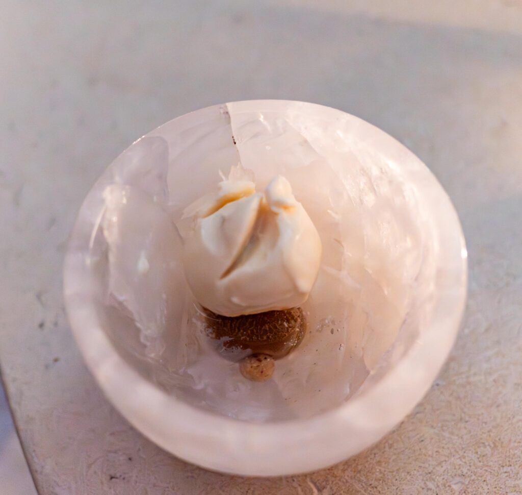 This is one of the more intriguing names on the menu. Smoked mussel brings brine and richness, while Buddha’s hand (essentially aromatic citrus peel) is all about fragrance rather than juice. We’re guessing smoke, salt, and perfume—probably a small, punchy course. Could be fantastic if restrained, or overpowering if the smoke goes too far.