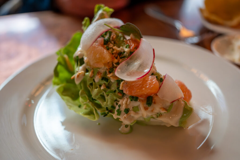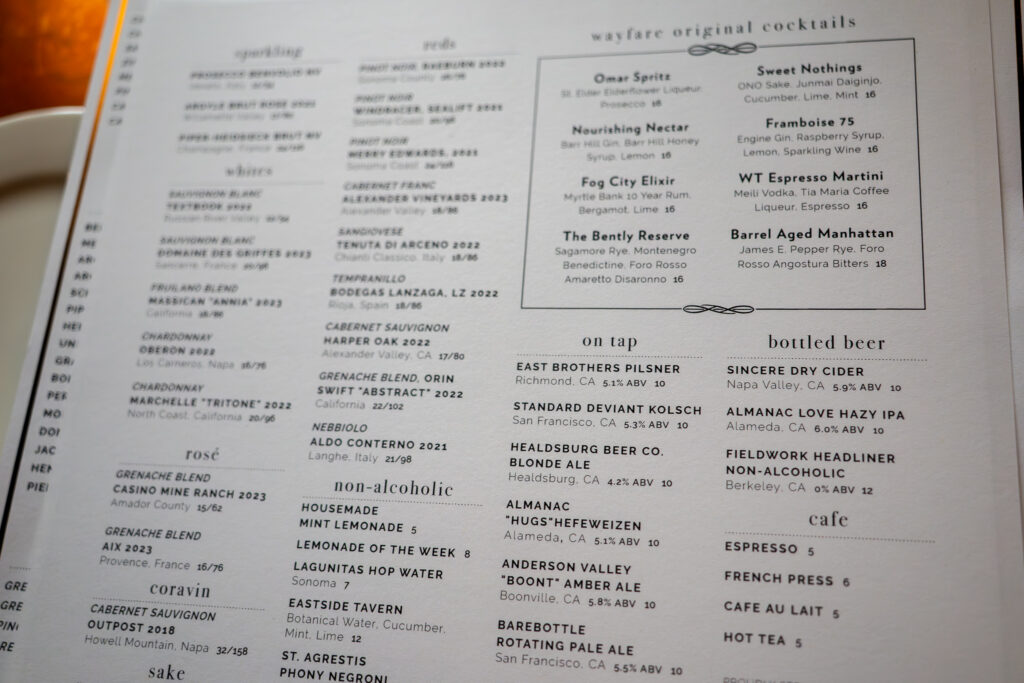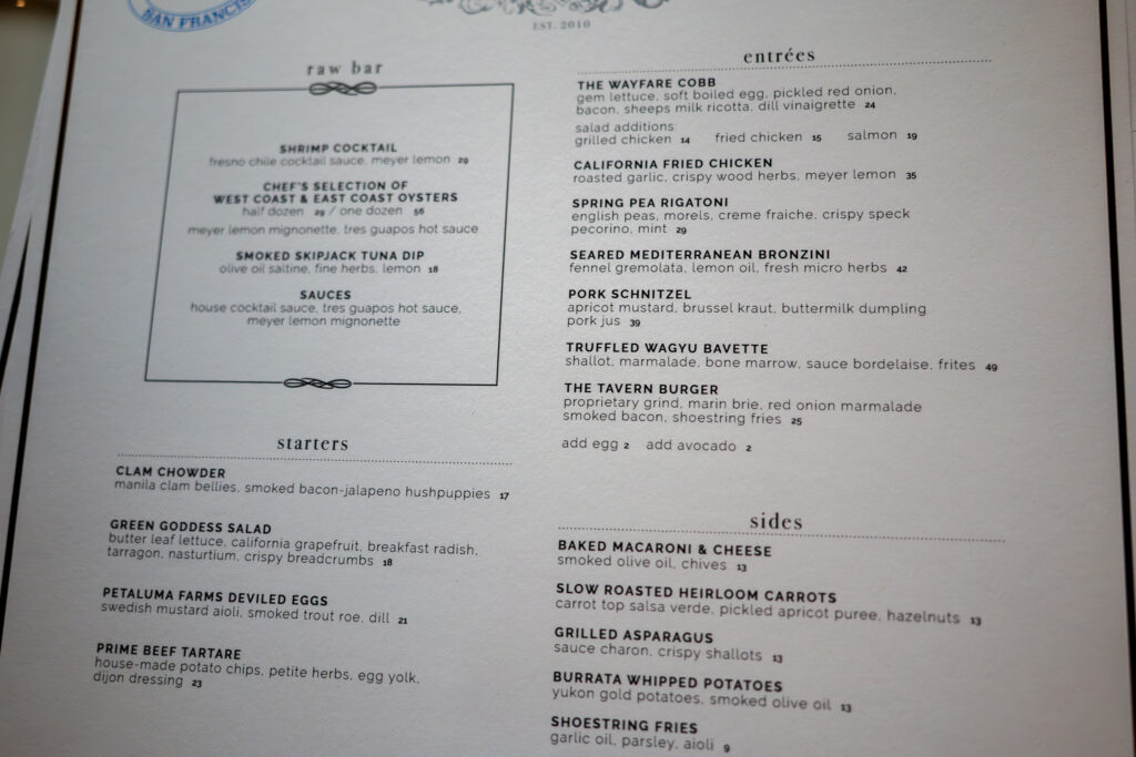 We were interested in going to Wayfare Tavern’s new location. I think it’s been over 20 years since I’ve eaten here (although Andrea had been more recently), so I really didn’t recall the food. We both did like the atmosphere more at the old location, but things move on.